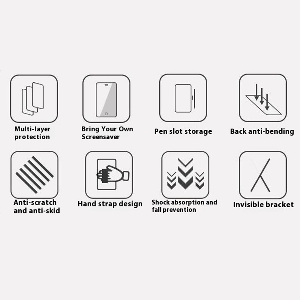 - Built-In Pen Slot & Detachable Magic Hand Strap Securely stores your pencil or stylus, paired with a hand strap for easy carrying and anti-slip grip during commutes or outdoor use