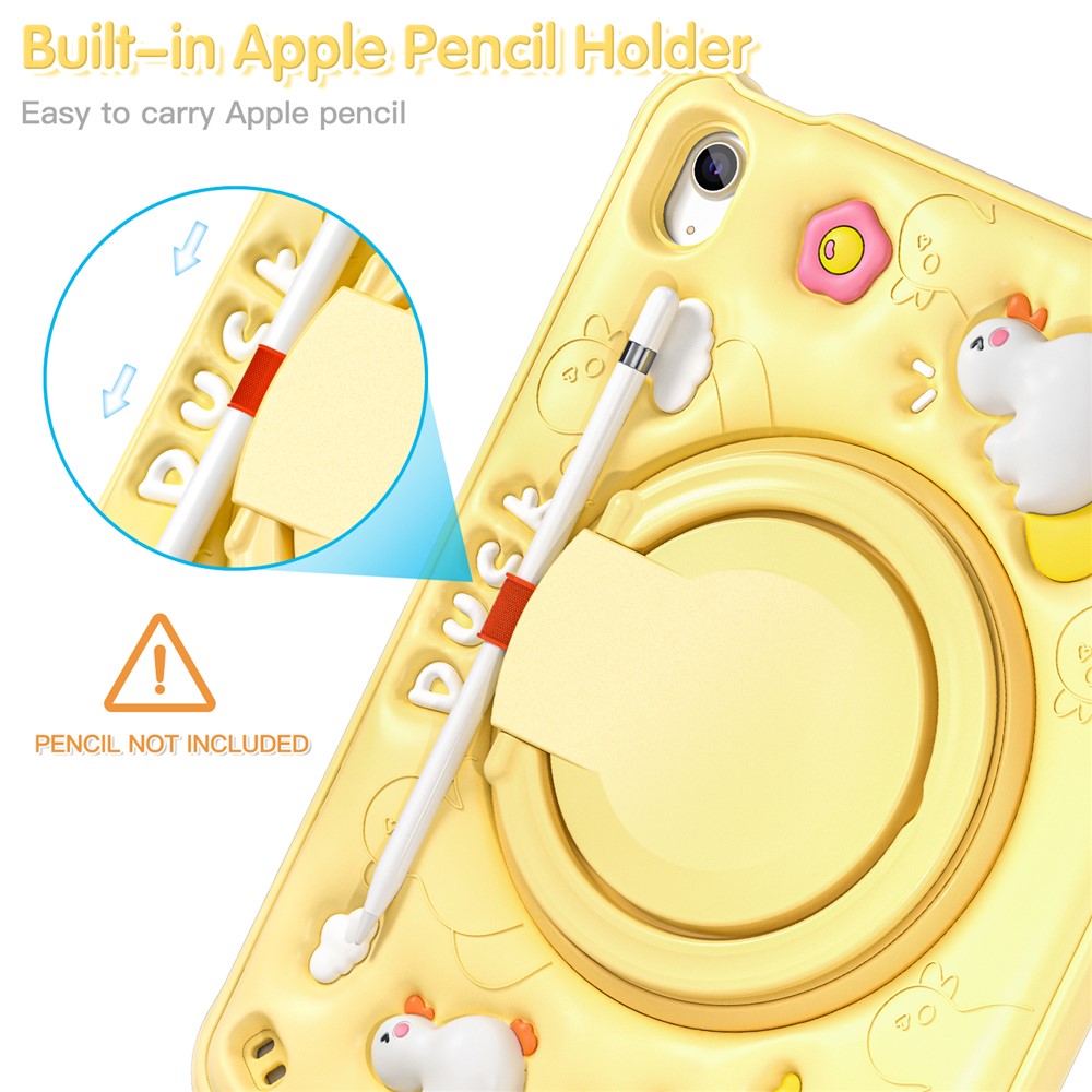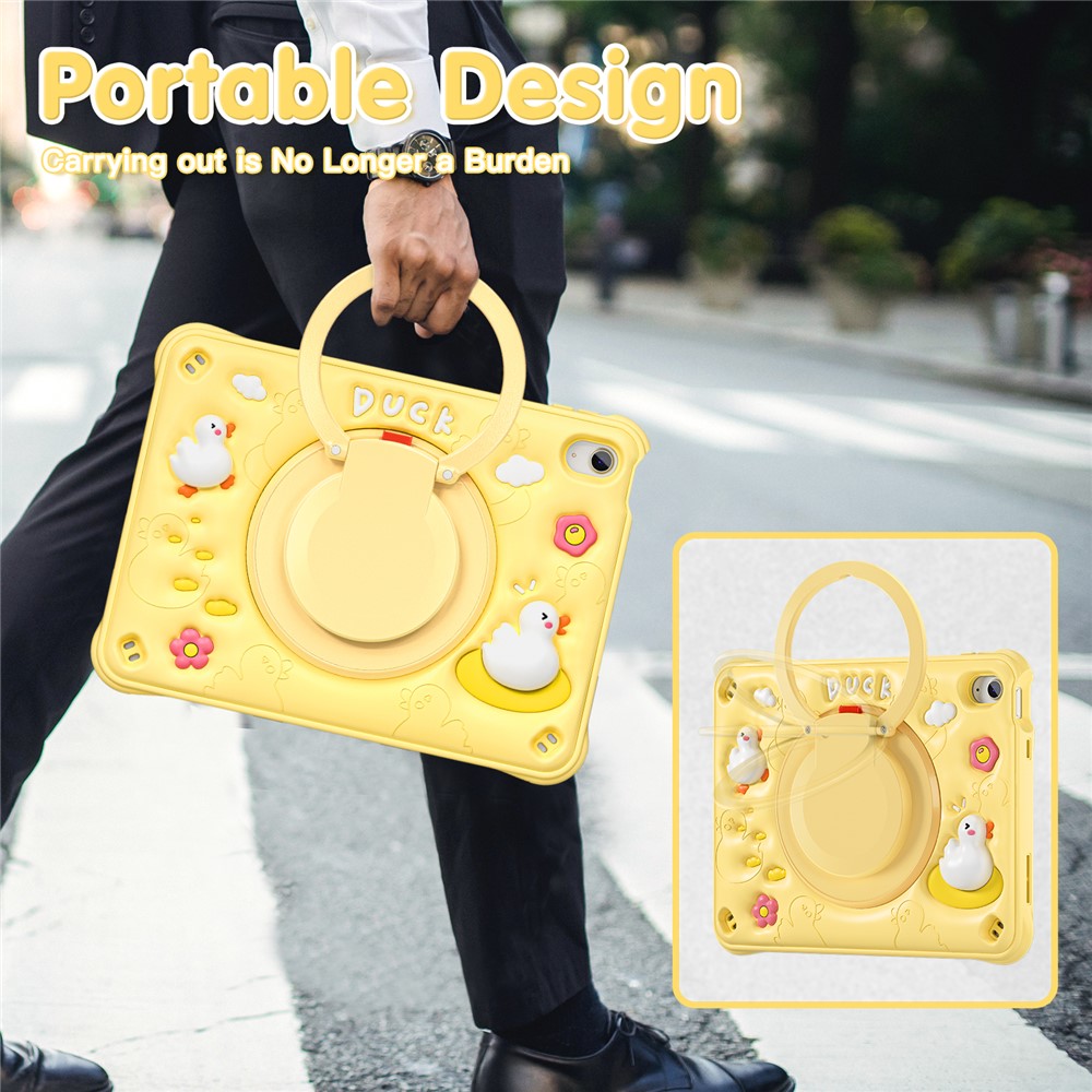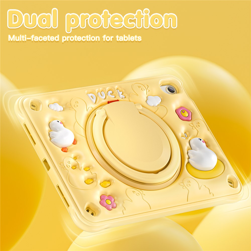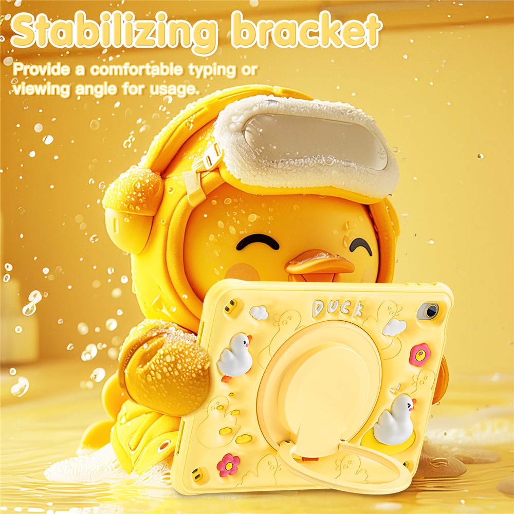 For iPad (2025) / 10.9 (2022) Case Cartoon Duck Kickstand PC+Silicone+TPU Tablet Cover