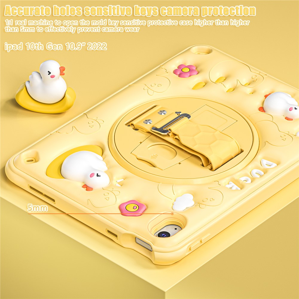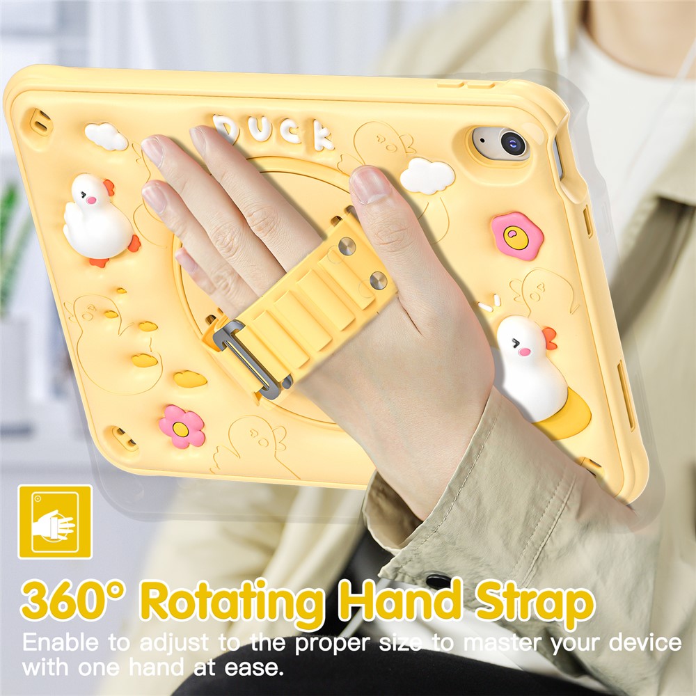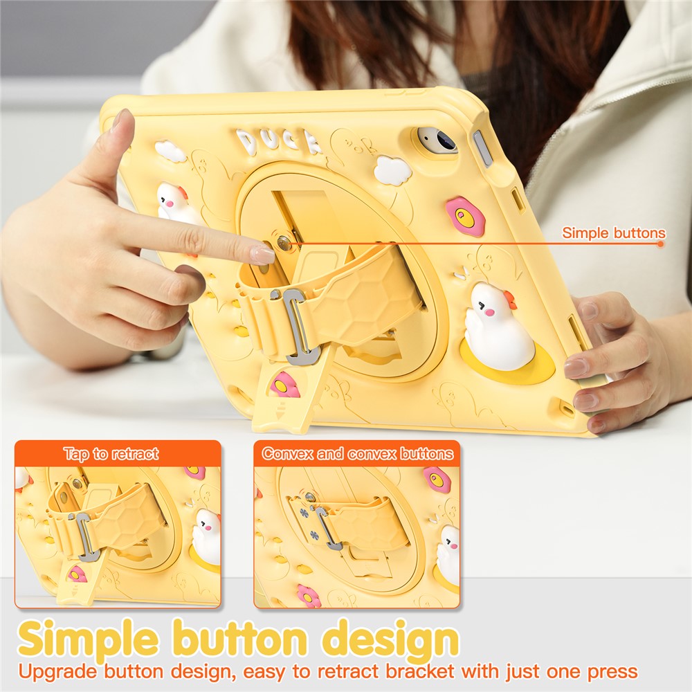 For iPad (2025) / 10.9 (2022) Case Duck Pattern Hand Strap Kickstand PC+Silicone+TPU Tablet Cover