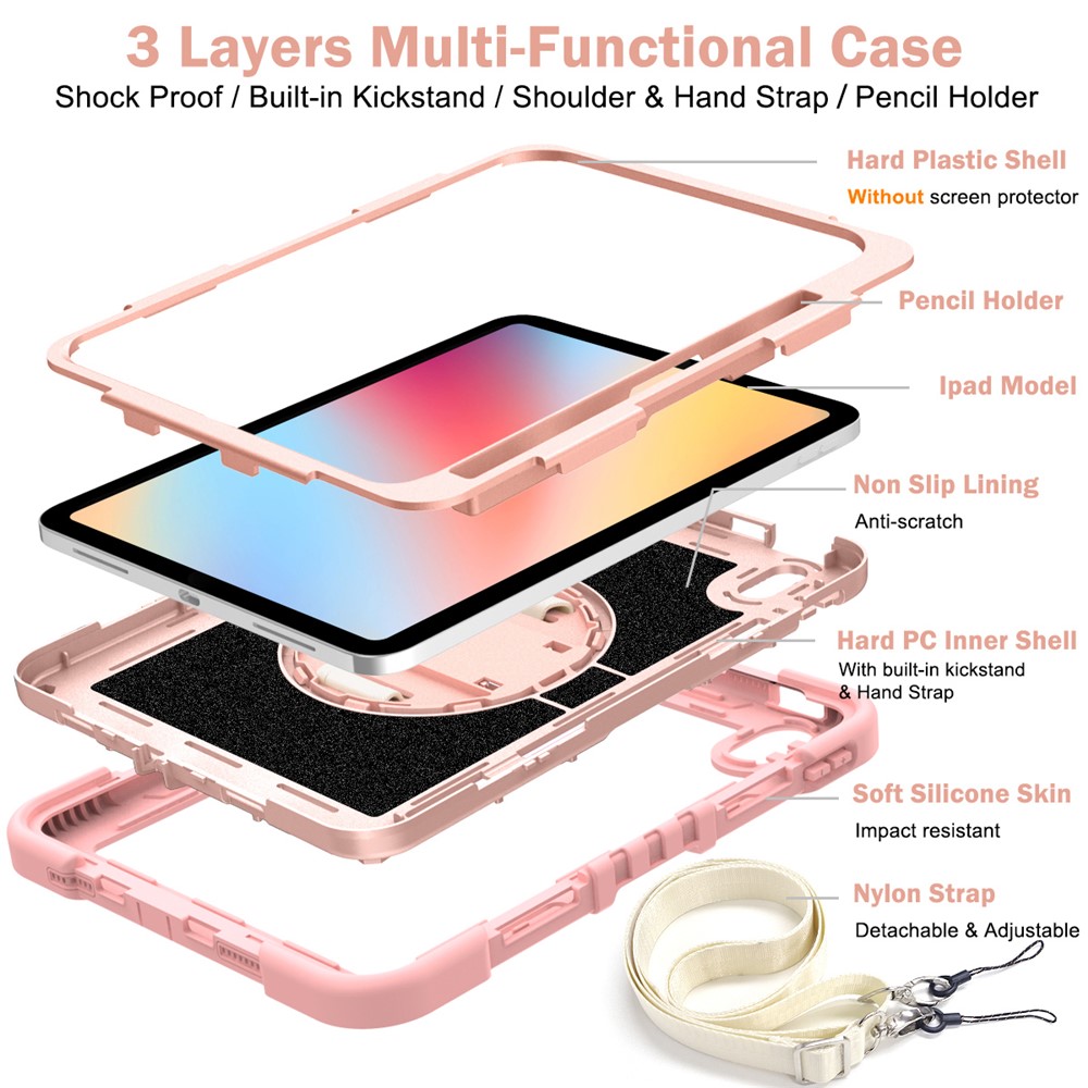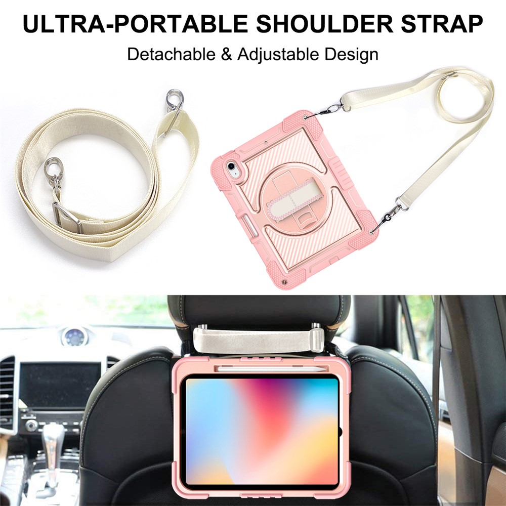 - 360-Degree Kickstand Features an integrated 360-degree rotary kickstand, allowing hands-free viewing in both landscape and portrait modes, not only with a kickstand, but also with a hand strap