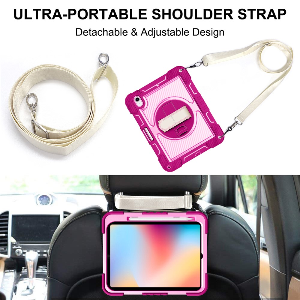 - 360-Degree Kickstand Features an integrated 360-degree rotary kickstand, allowing hands-free viewing in both landscape and portrait modes, not only with a kickstand, but also with a hand strap