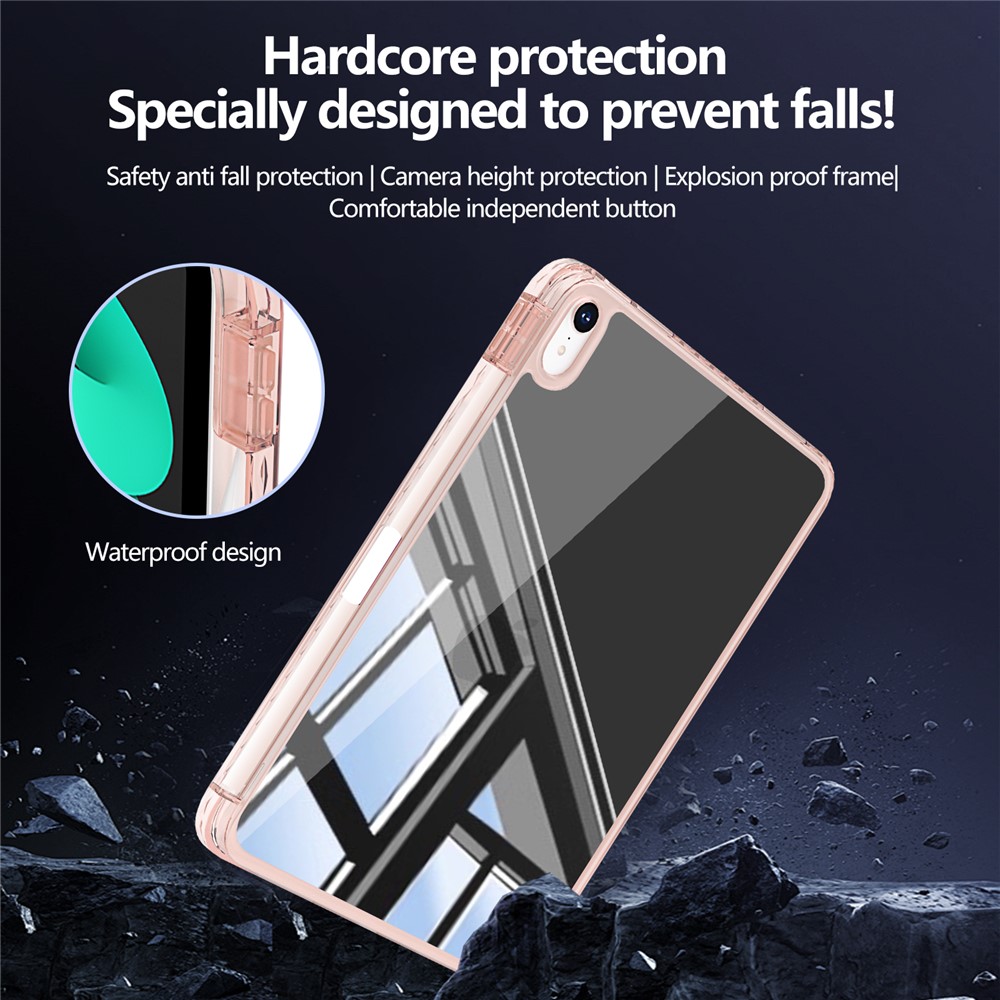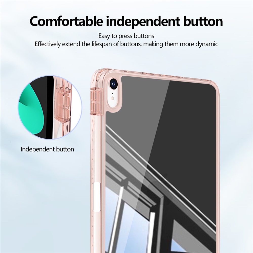 For iPad (2025) / 10.9 (2022) Case Mirror Acrylic TPU Shockproof Tablet Cover with Pen Slot - Pink $18.53