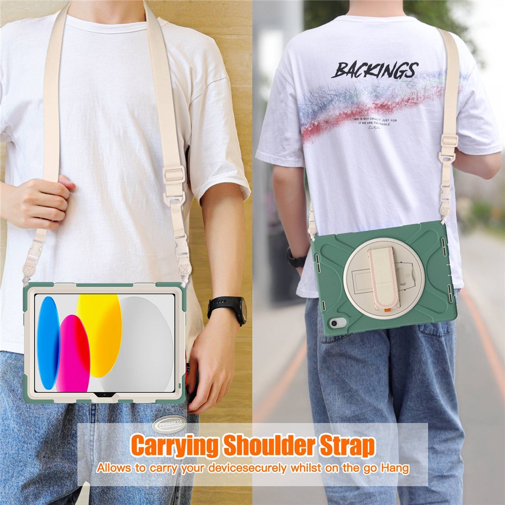 Integrated 360-degree rotary kickstand with a magic tape hand band frees your hands for landscape or portrait viewing