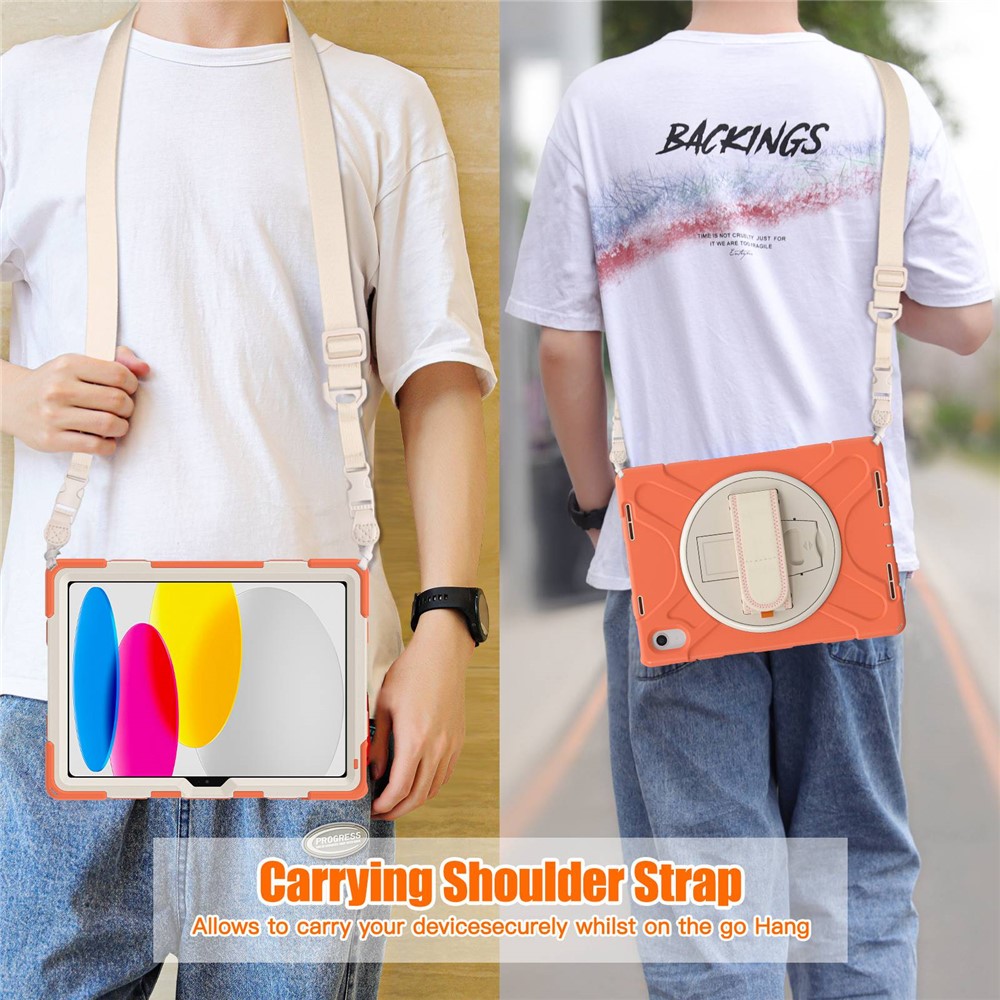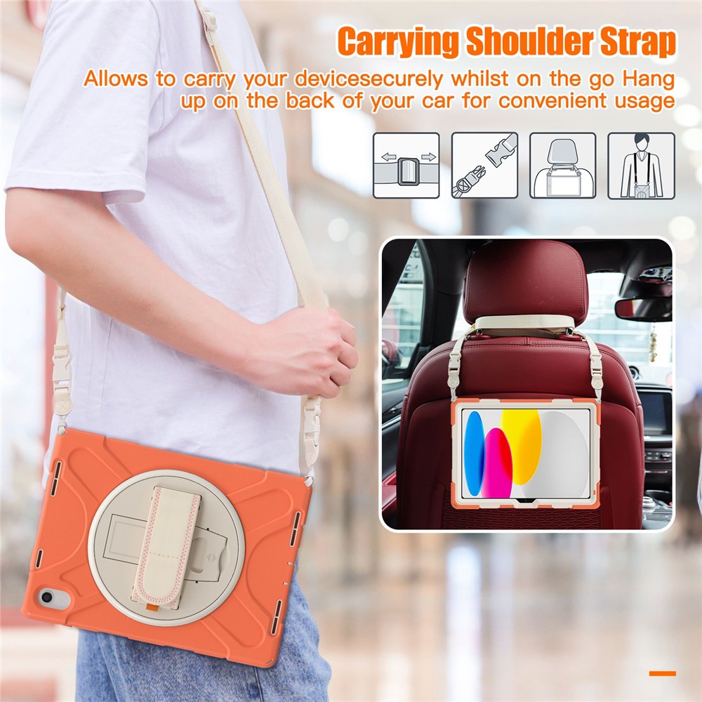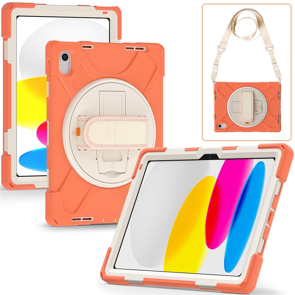 Integrated 360-degree rotary kickstand with a magic tape hand band frees your hands for landscape or portrait viewing