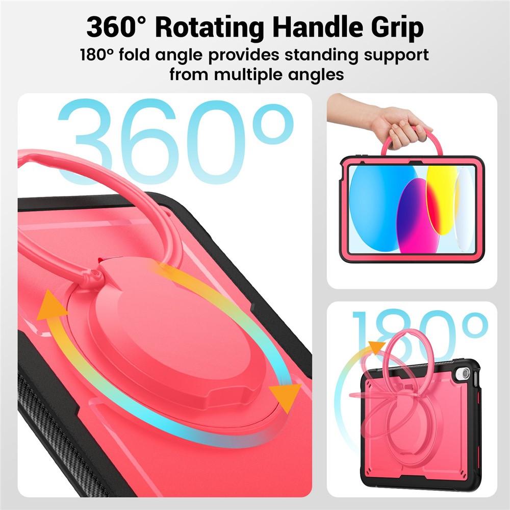 - 360° Rotating Kickstand & Portatble Handle: Features a multifunctional handle that doubles as a 360° rotating kickstand, allowing for easy carrying and convenient hands-free viewing at various angles