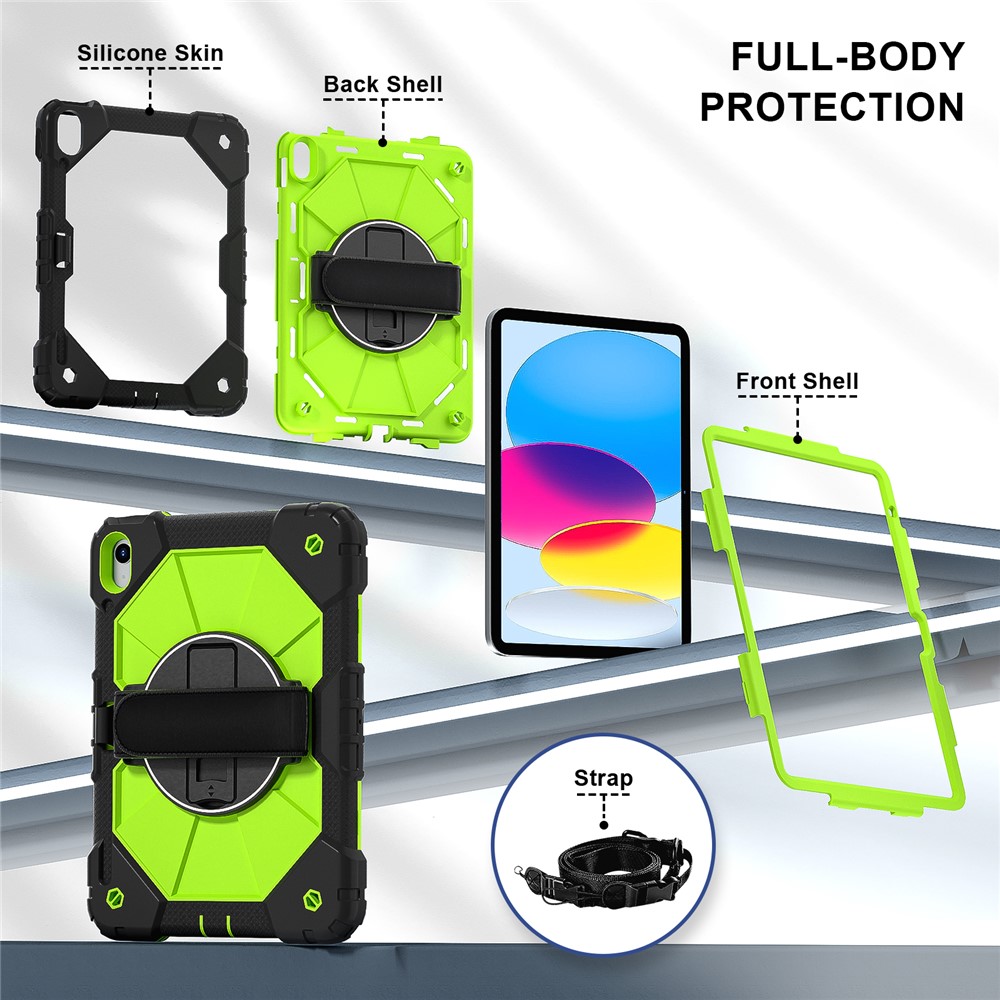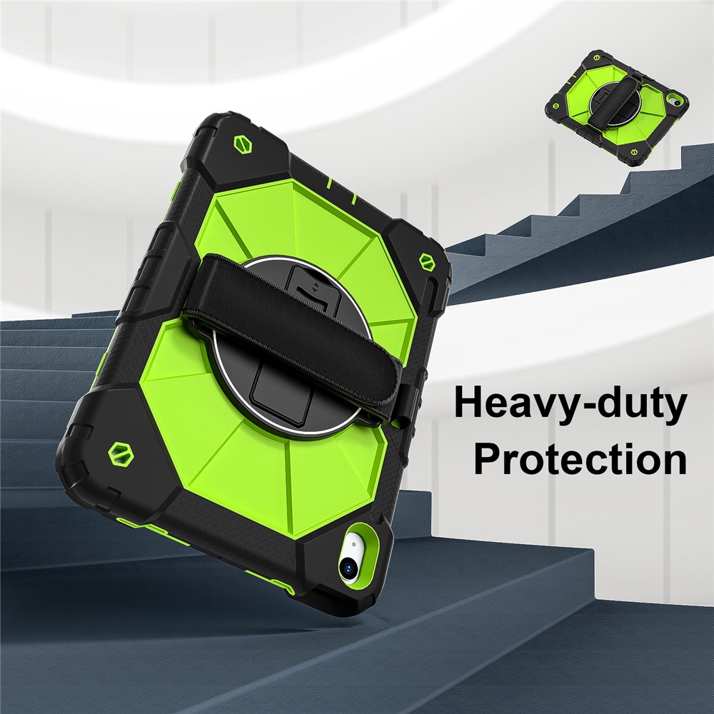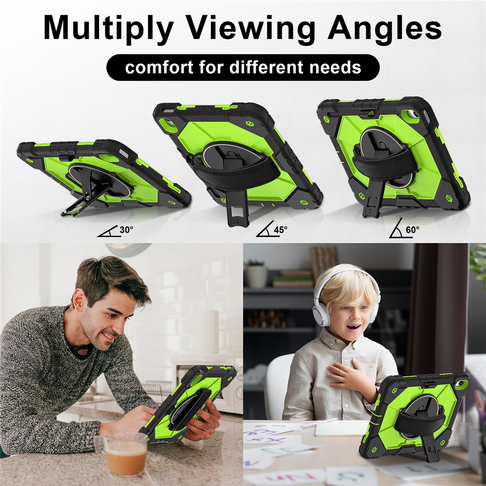 - Folding Kickstand & Hand Strap Features an integrated folding kickstand, allowing hands-free viewing; There is a handy strap on the back of the case, supporting 360-degree rotating, and you can hold your tablet in one hand