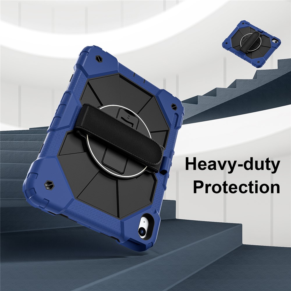 - Folding Kickstand & Hand Strap Features an integrated folding kickstand, allowing hands-free viewing; There is a handy strap on the back of the case, supporting 360-degree rotating, and you can hold your tablet in one hand