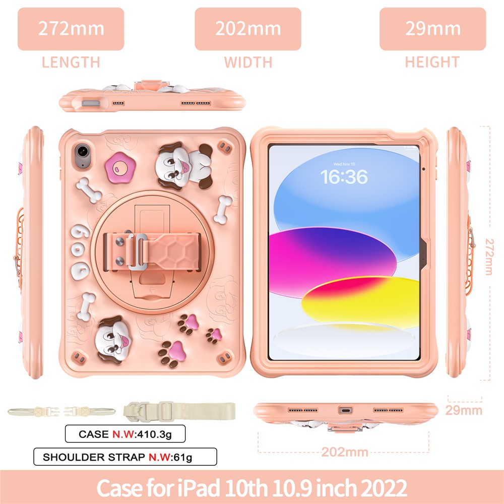 For iPad (2025) / 10.9 (2022) Case with Shoulder Strap Kickstand Cute Dog PC+Silicone+TPU Tablet Cover