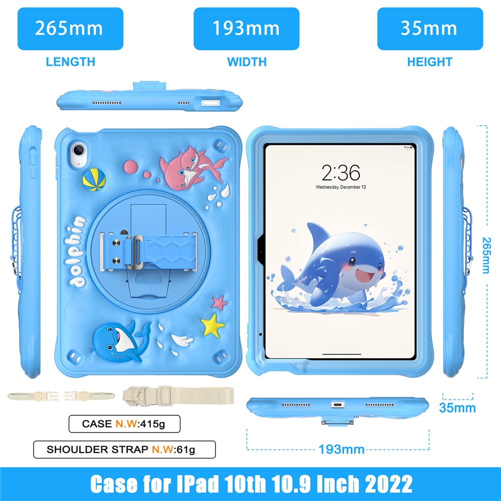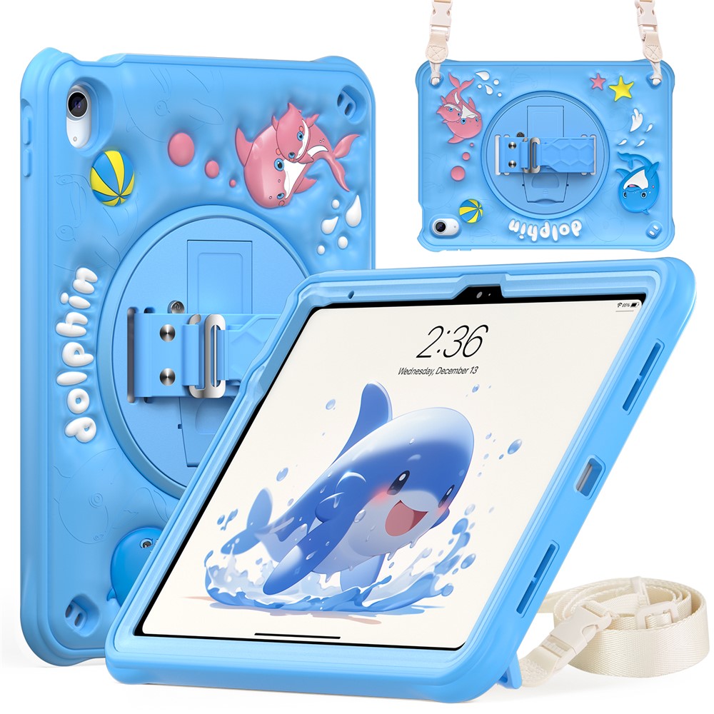 For iPad (2025) / 10.9 (2022) Case with Shoulder Strap Kickstand PC+Silicone+TPU Cute Dolphin Cover