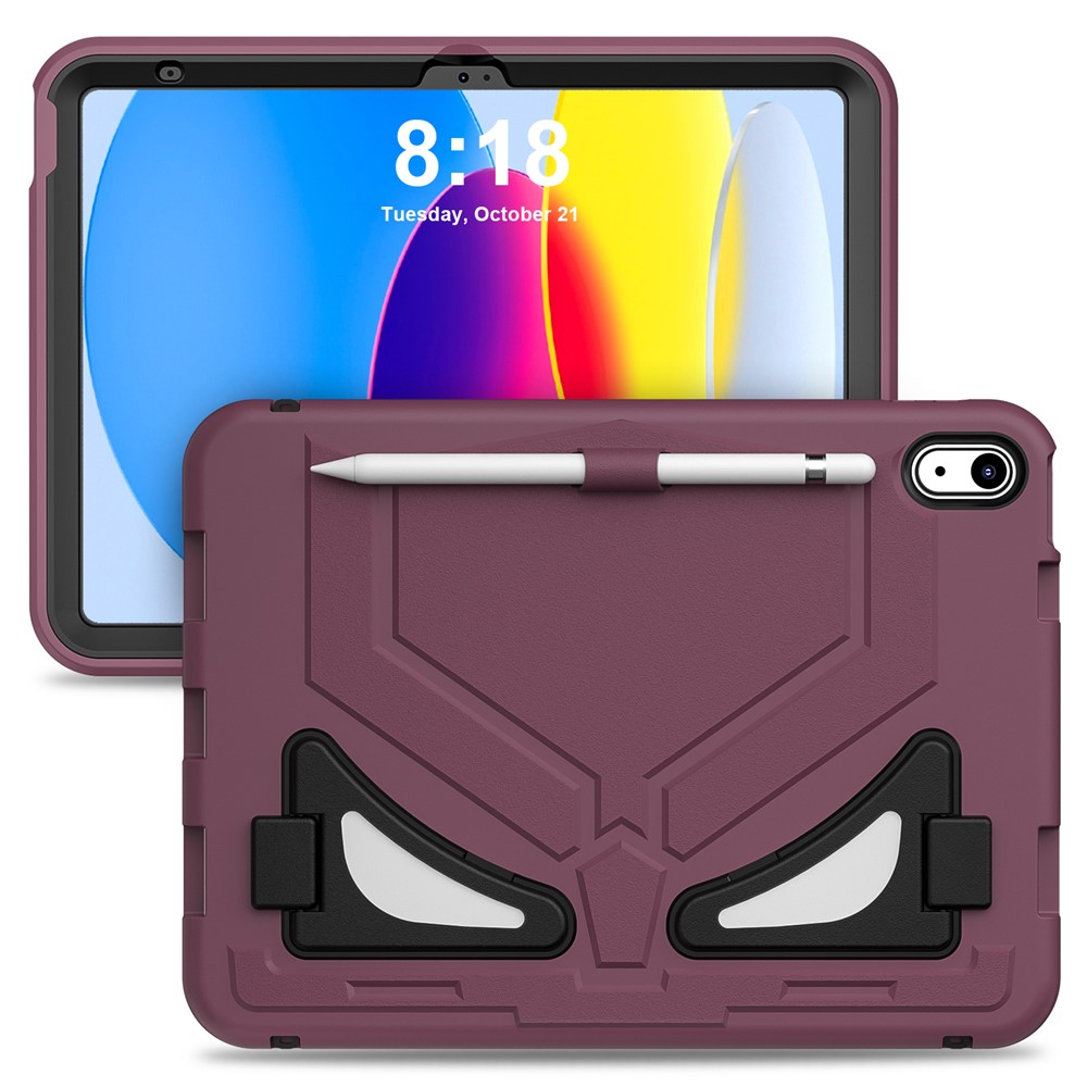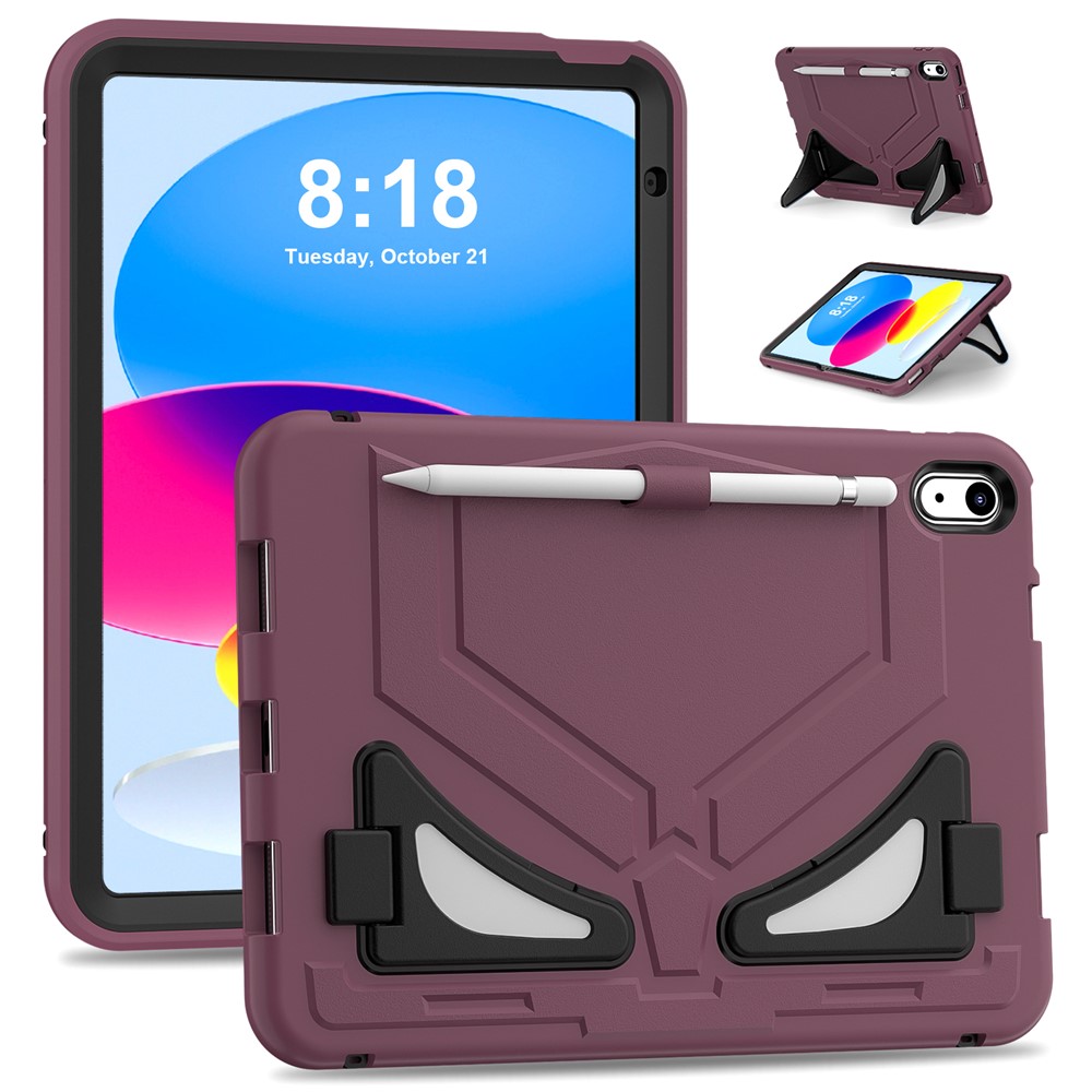 • For iPad (2025) / 10.9 (2022) Leopard Style Case Rugged Drop Protection Cover with Kickstand - Purple+Black