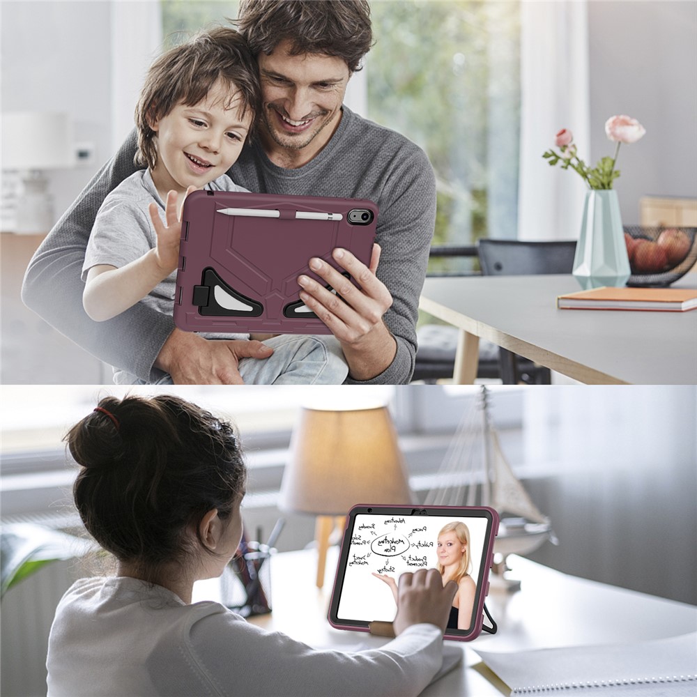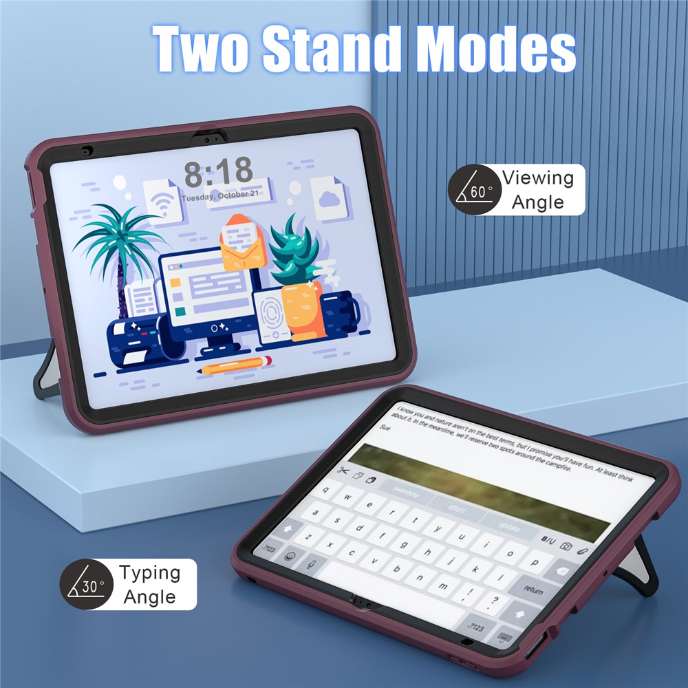 • For iPad (2025) / 10.9 (2022) Leopard Style Case Rugged Drop Protection Cover with Kickstand - Purple+Rose