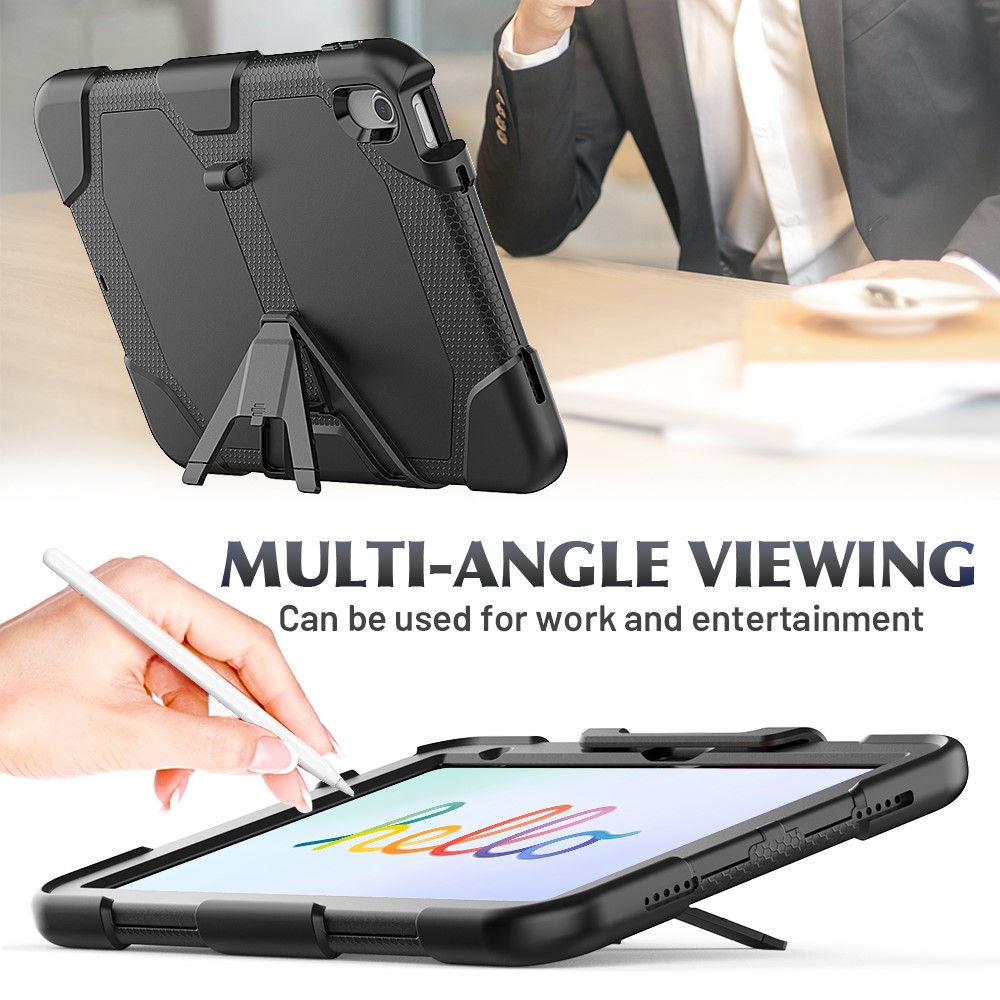 For iPad (2025) / 10.9 (2022) PC + Silicone Case Kickstand Cover Tablet Case with Screen Protector Pen Holder – Black