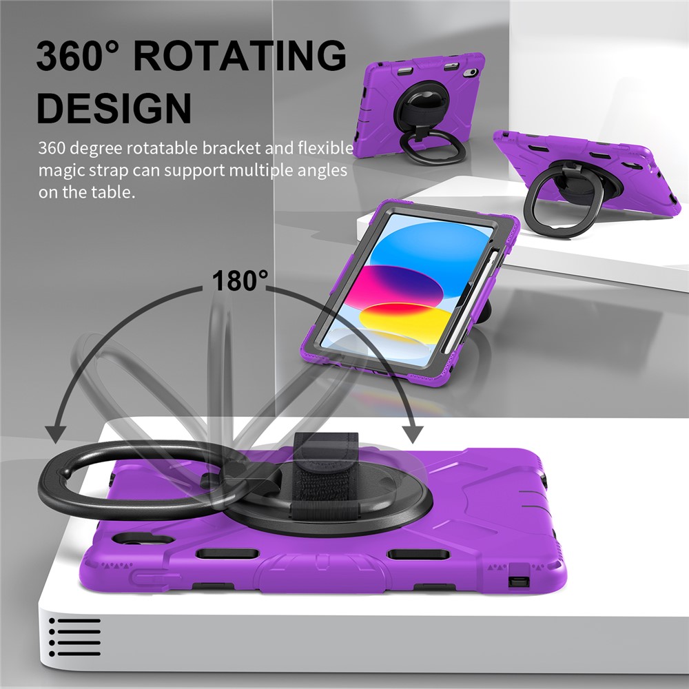 - 180-degree and 360-degree rotary kickstand supports multi angles adjustment, and can be used as a hand grip for convenient carrying