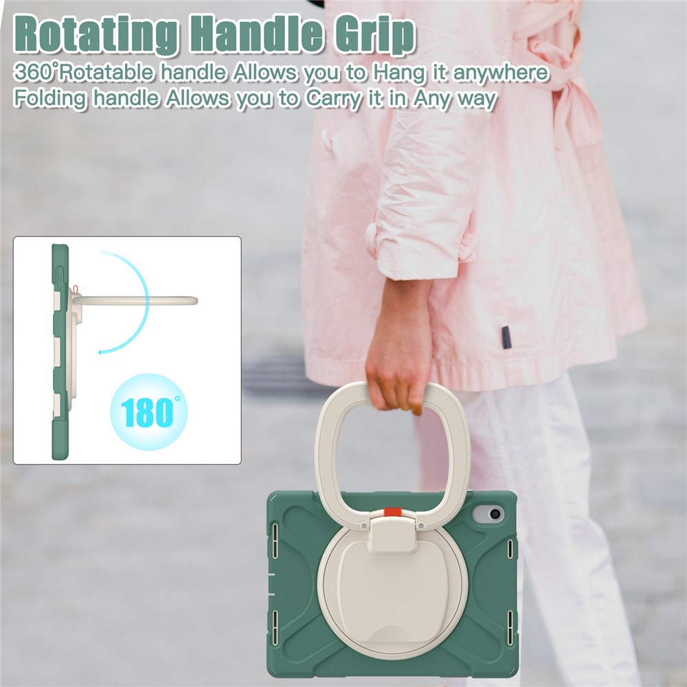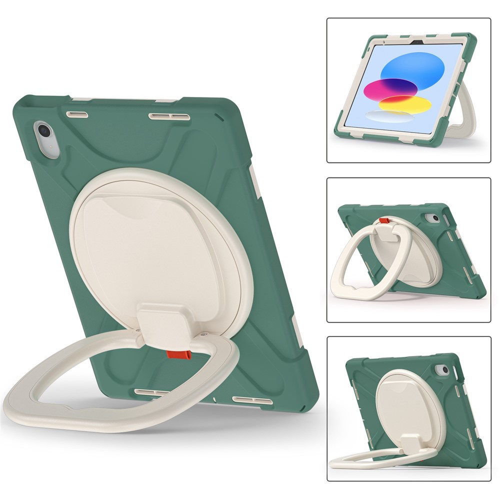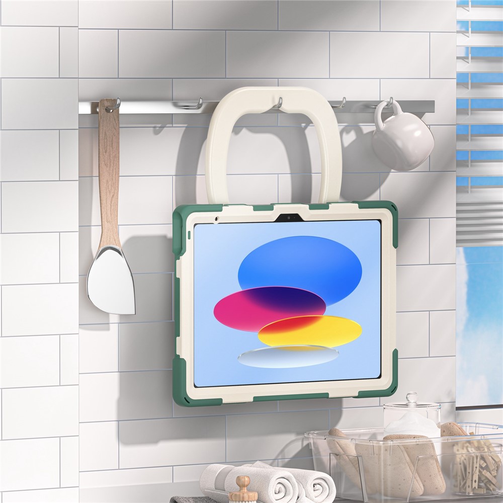 For iPad (2025) / 10.9 (2022) Shockproof Case Anti-Fall Tablet Case PC Silicone Protective Cover with Kickstand – Emerald Green