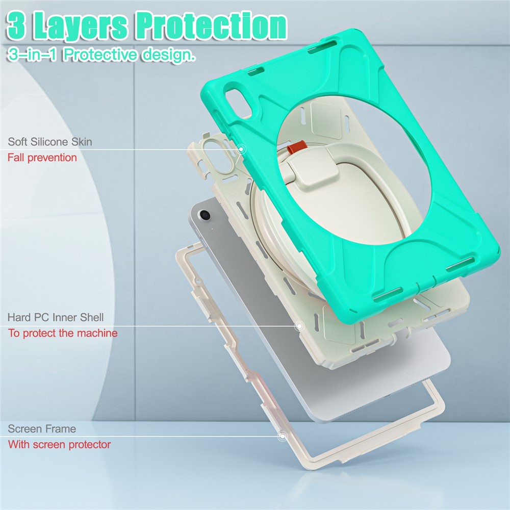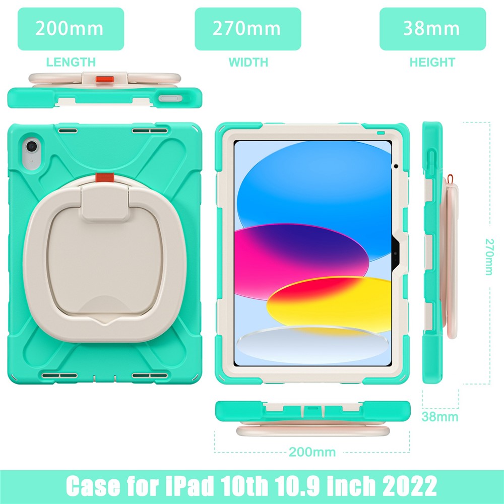 For iPad (2025) / 10.9 (2022) Shockproof Case Anti-Fall Tablet Case PC Silicone Protective Cover with Kickstand – Mint Green