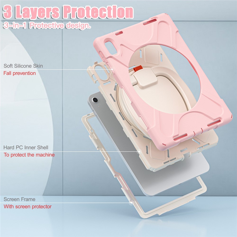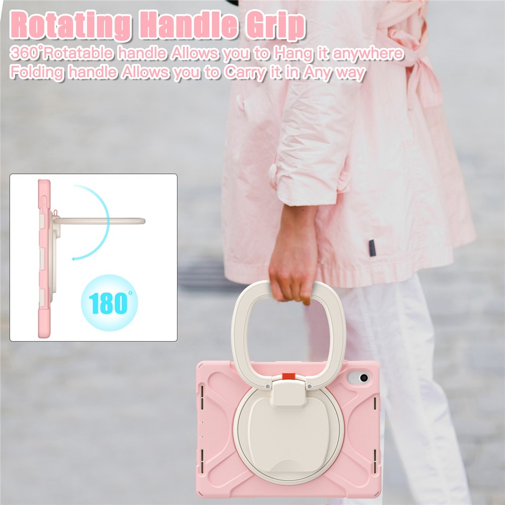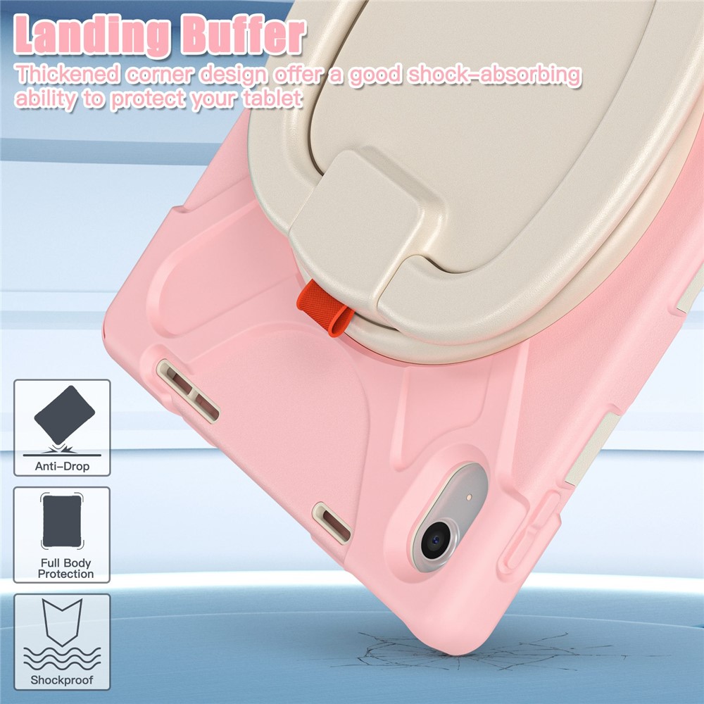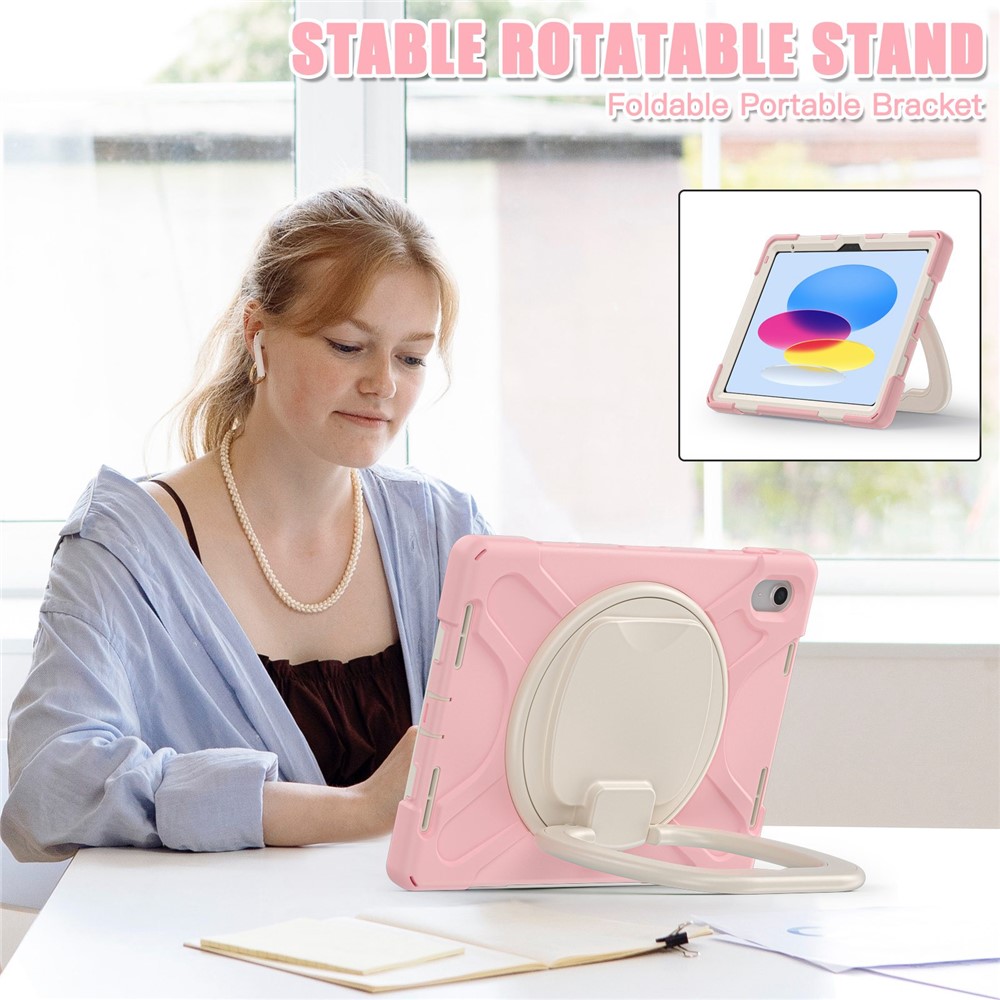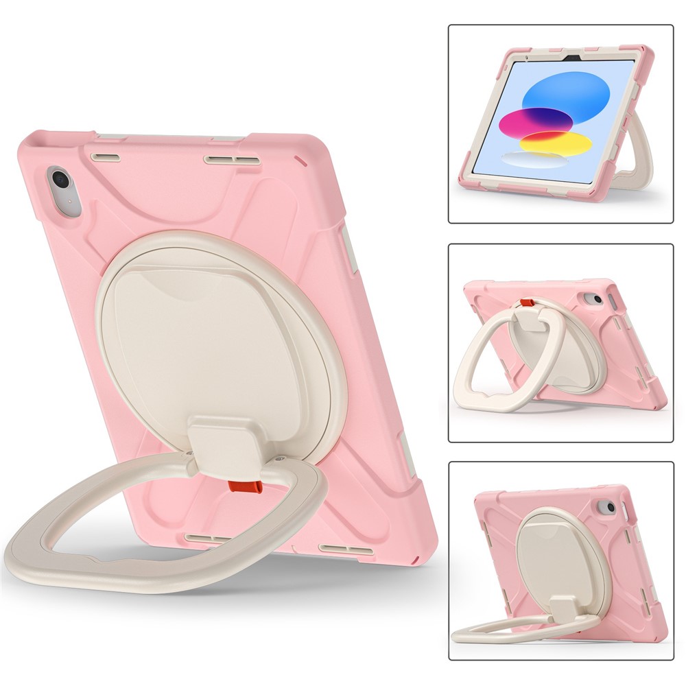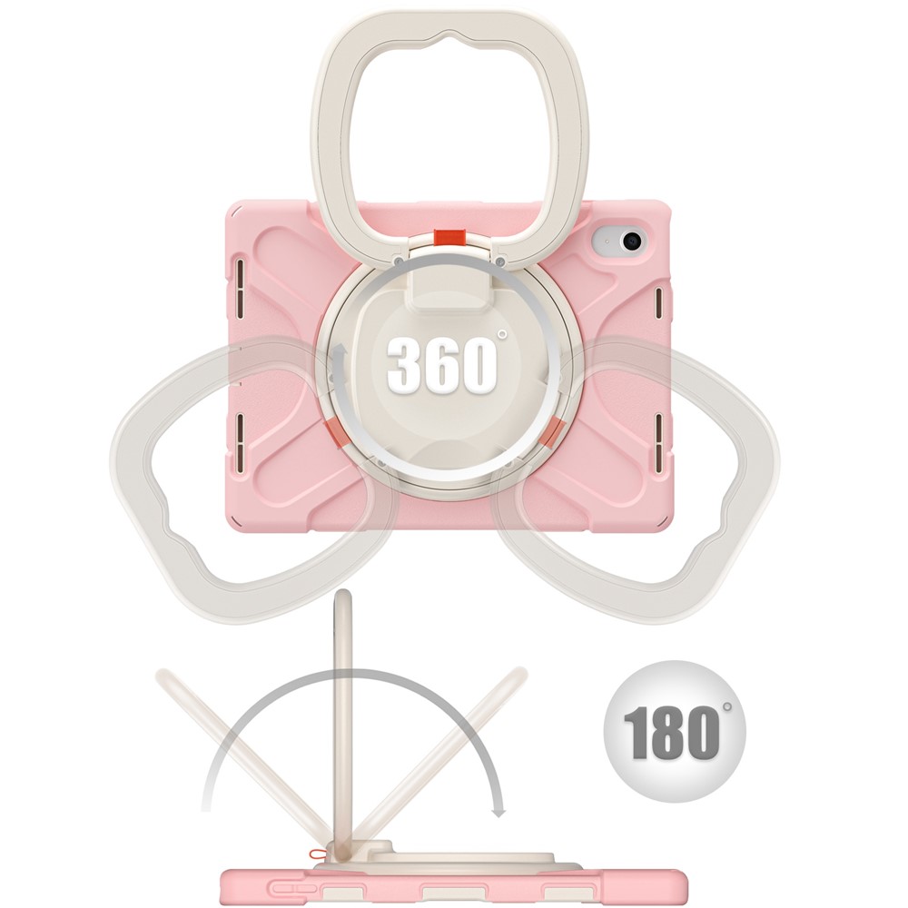 For iPad (2025) / 10.9 (2022) Shockproof Case Anti-Fall Tablet Case PC Silicone Protective Cover with Kickstand – Pink