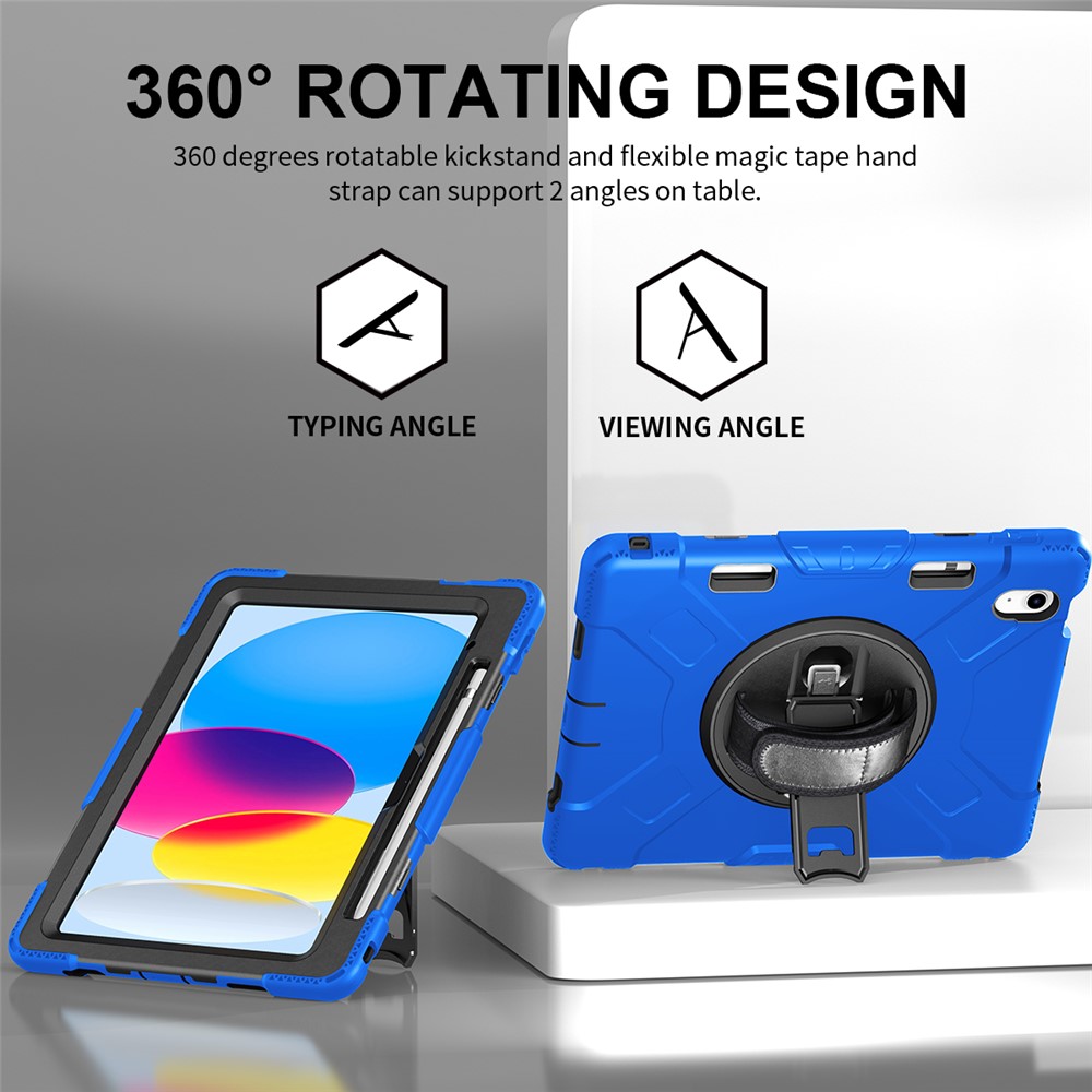 - The folding 360-degree rotating kickstand supports viewing/typing angles adjustment