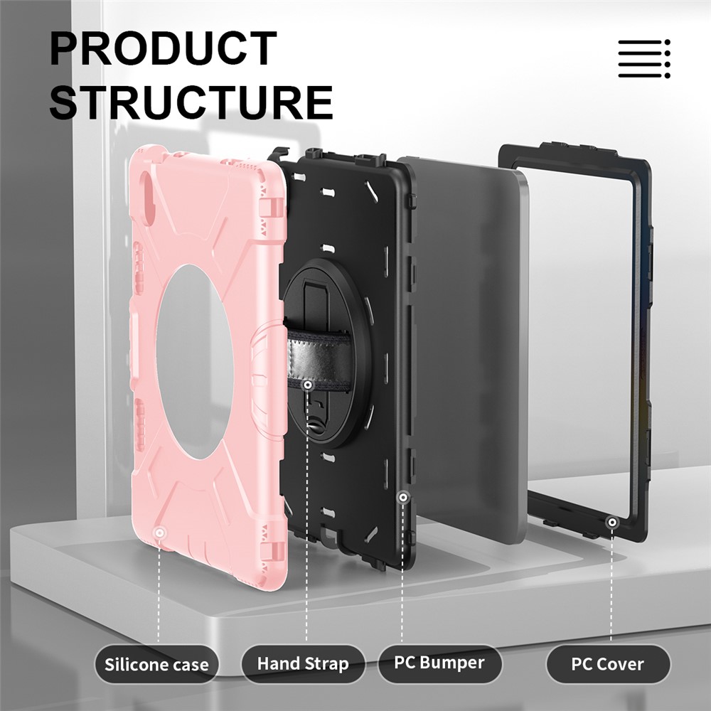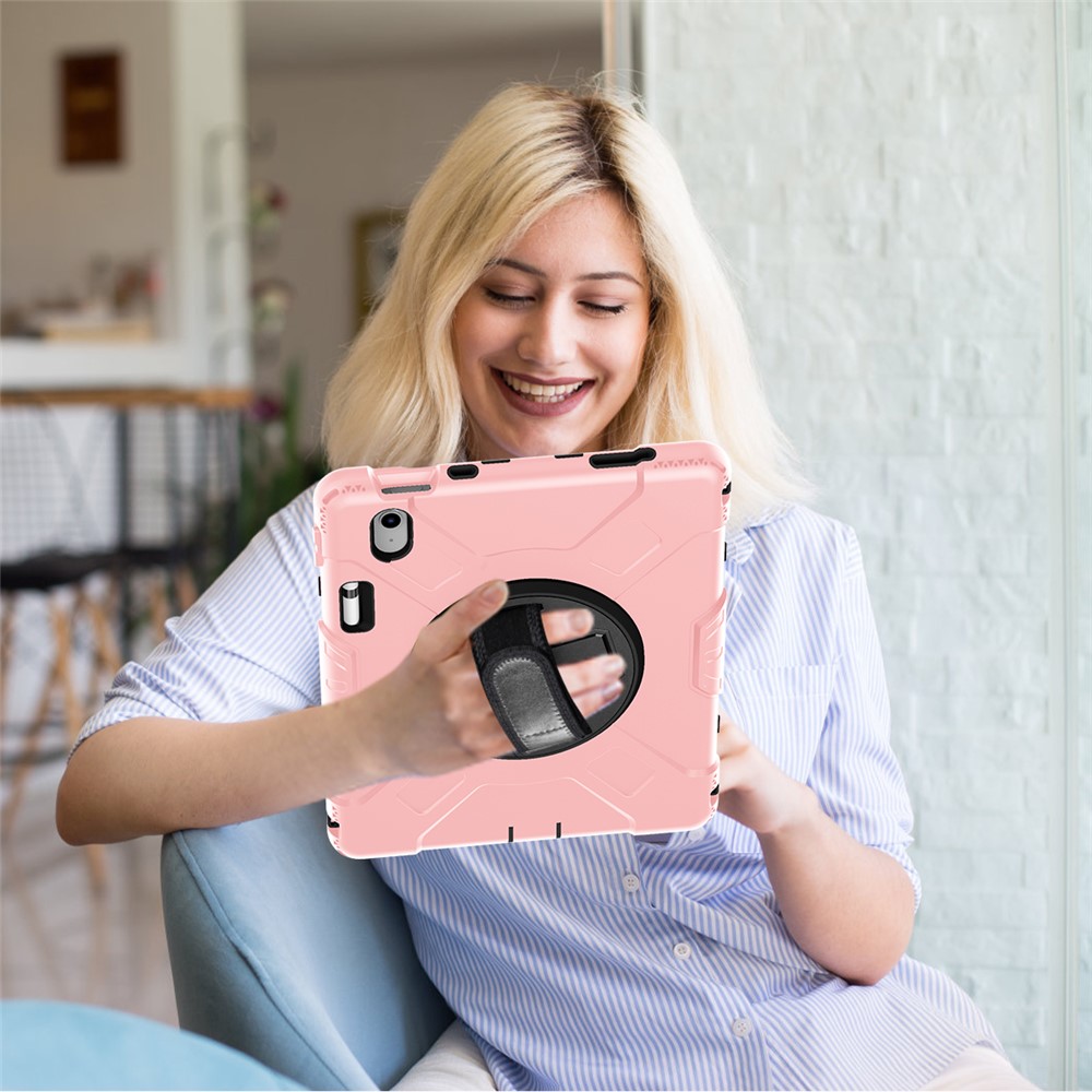 - There is a hand band strap on the back of the tablet case, which allows you to hold your device safely with one hand