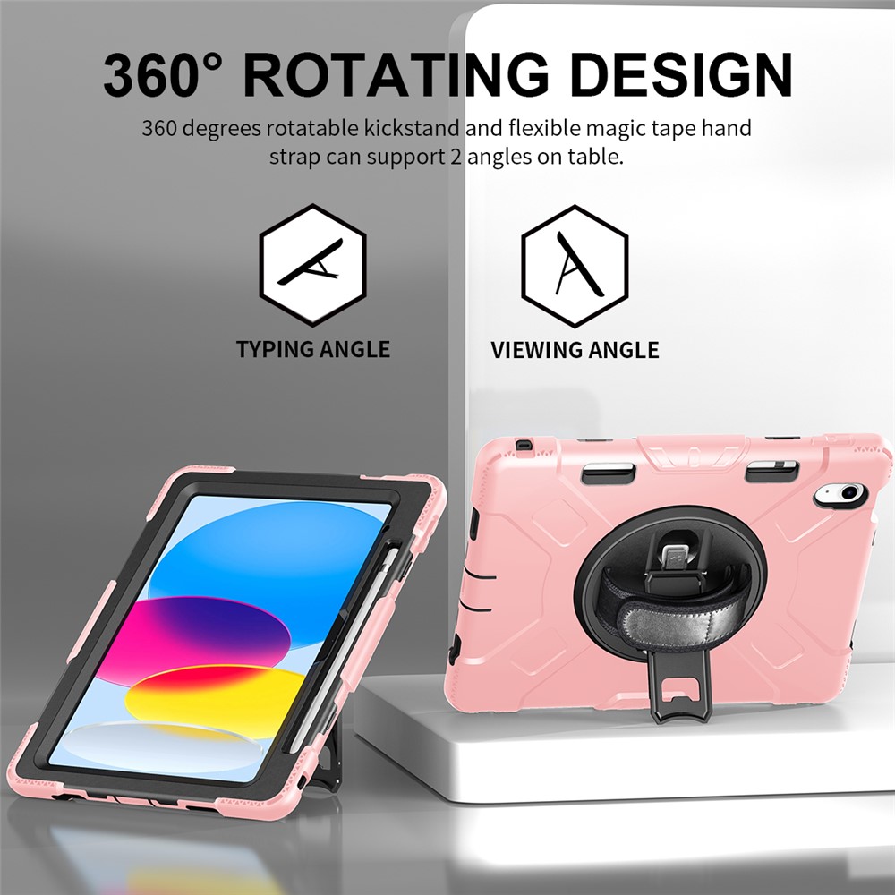 - The folding 360-degree rotating kickstand supports viewing/typing angles adjustment