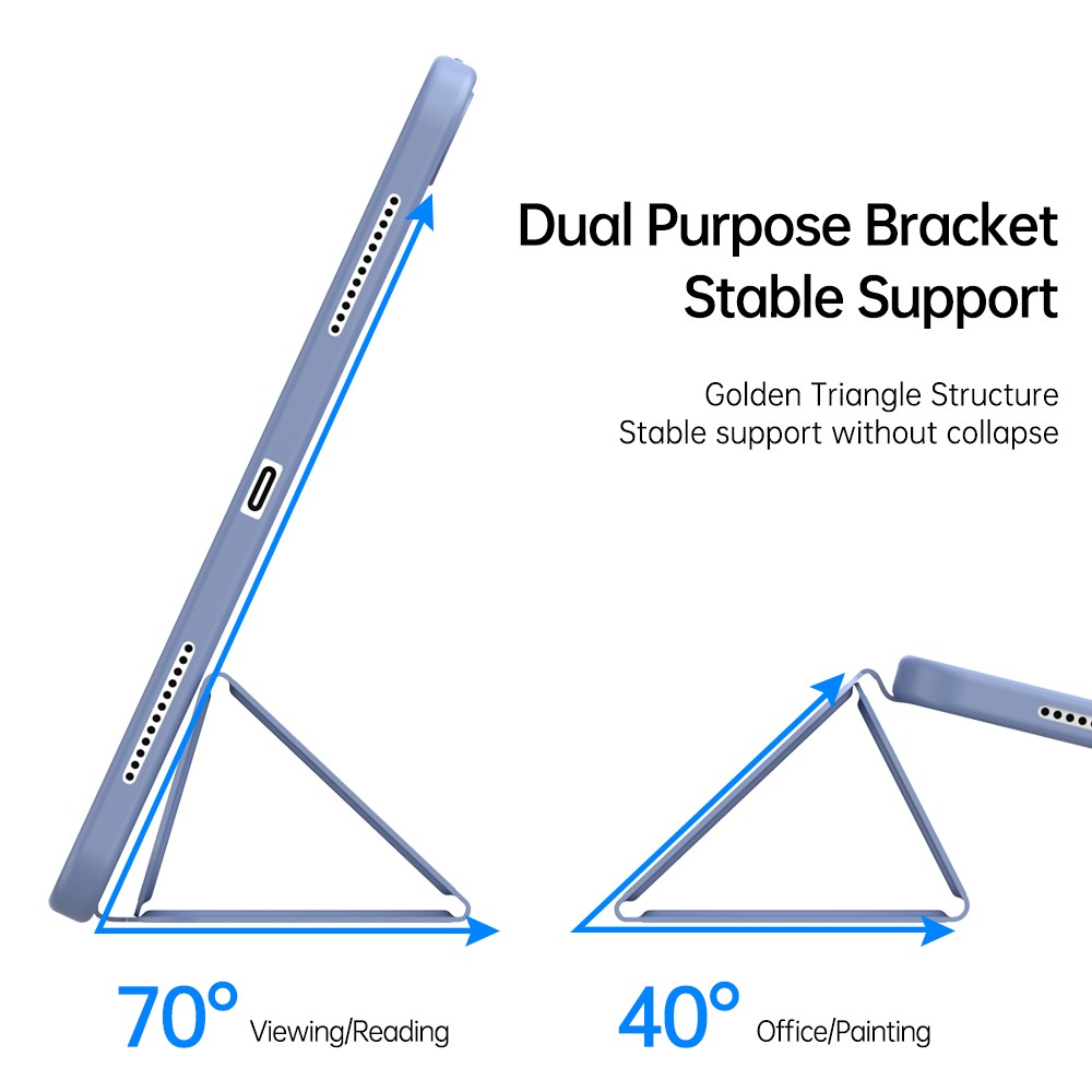 This tablet case adopts high-quality PU leather + TPU with fine details, making it feel soft and delicate to the touch. The tri-fold cover with dual angles support offers a sturdy and versatile stand for viewing and typing.