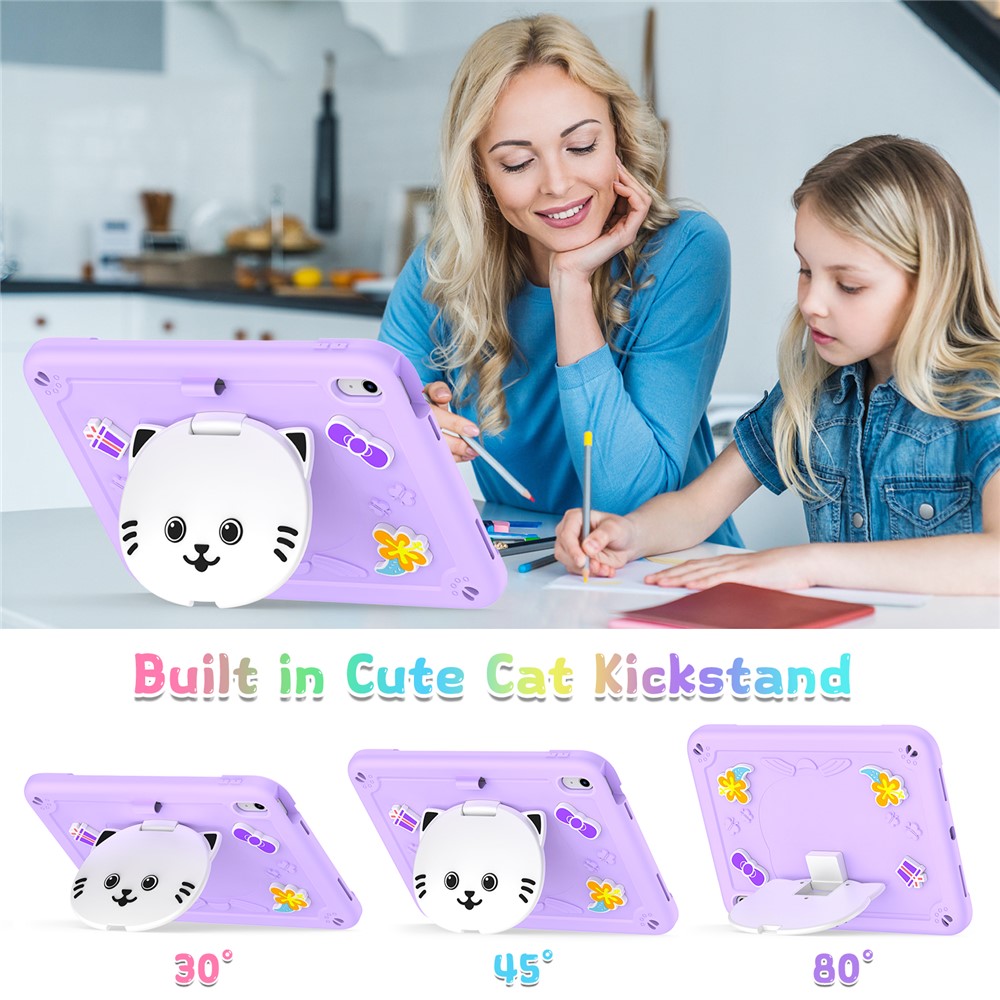 - Adorable Cat Kickstand Built-in 3-angle adjustable kickstand shaped like a cute cat — perfect for watching, learning, or video chatting hands-free.