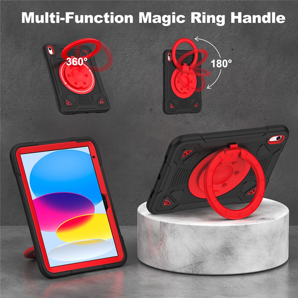 - 360° Rotatable Kickstand The multi-function magic ring rotates 360° and flips 180°, serving as a stand or handle for easy typing, watching, or carrying.