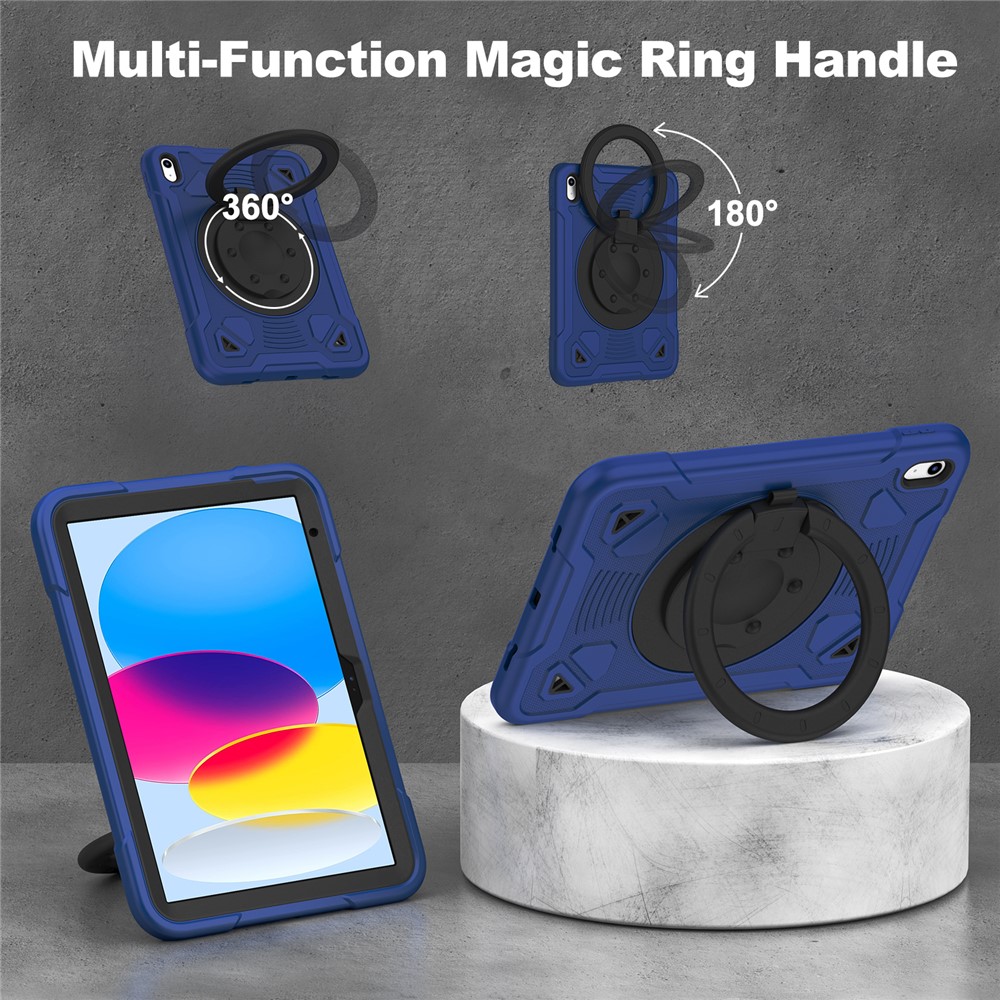 - 360° Rotatable Kickstand The multi-function magic ring rotates 360° and flips 180°, serving as a stand or handle for easy typing, watching, or carrying.