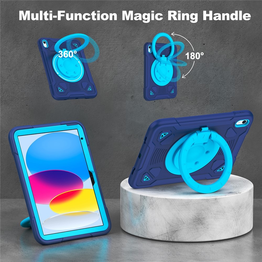 - 360° Rotatable Kickstand The multi-function magic ring rotates 360° and flips 180°, serving as a stand or handle for easy typing, watching, or carrying.
