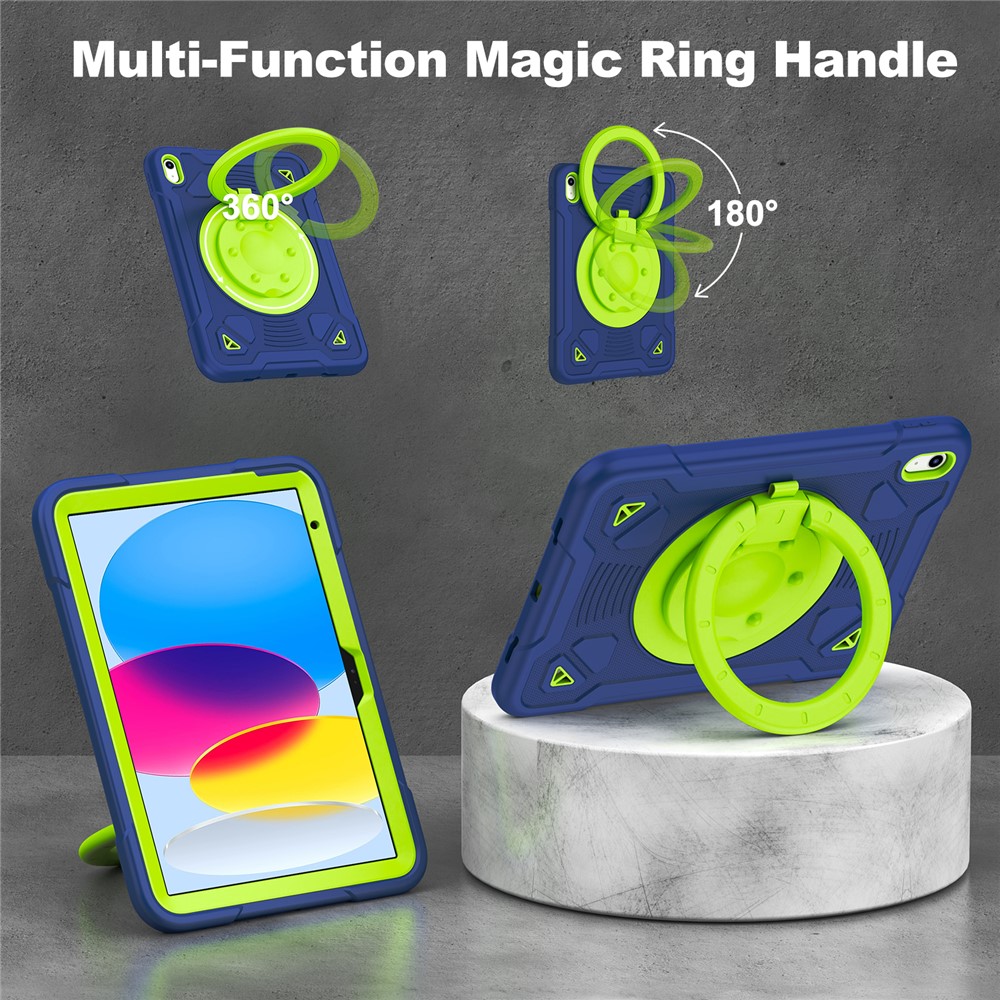 - 360° Rotatable Kickstand The multi-function magic ring rotates 360° and flips 180°, serving as a stand or handle for easy typing, watching, or carrying.