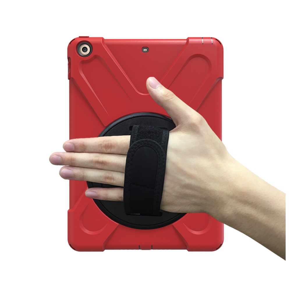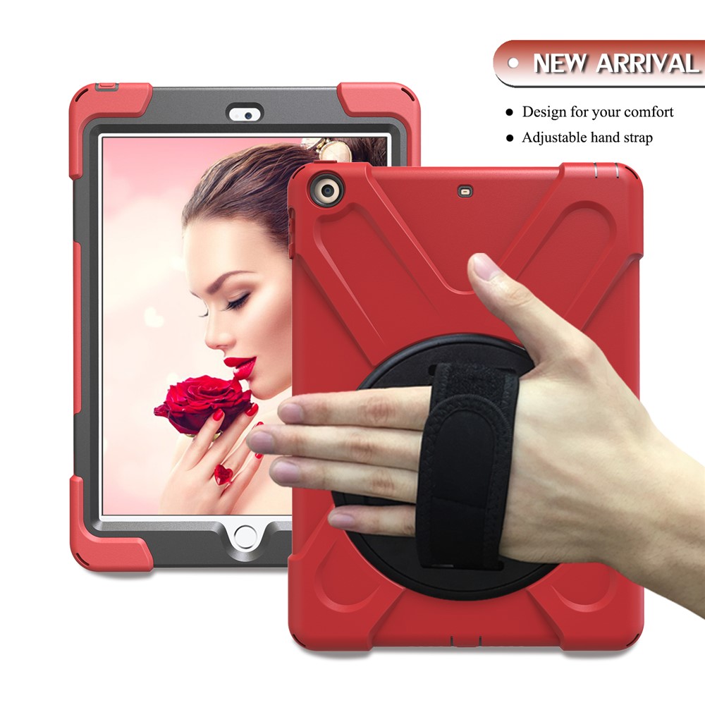 For iPad 9.7 (2018) / 9.7 (2017) X-Shape 360 Degree Swivel PC + TPU Combo Kickstand Protective Cover – Red