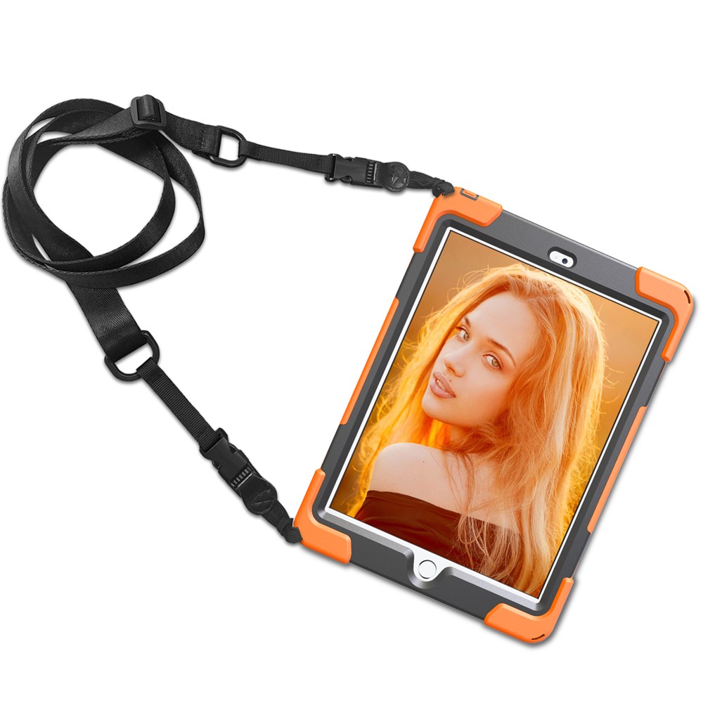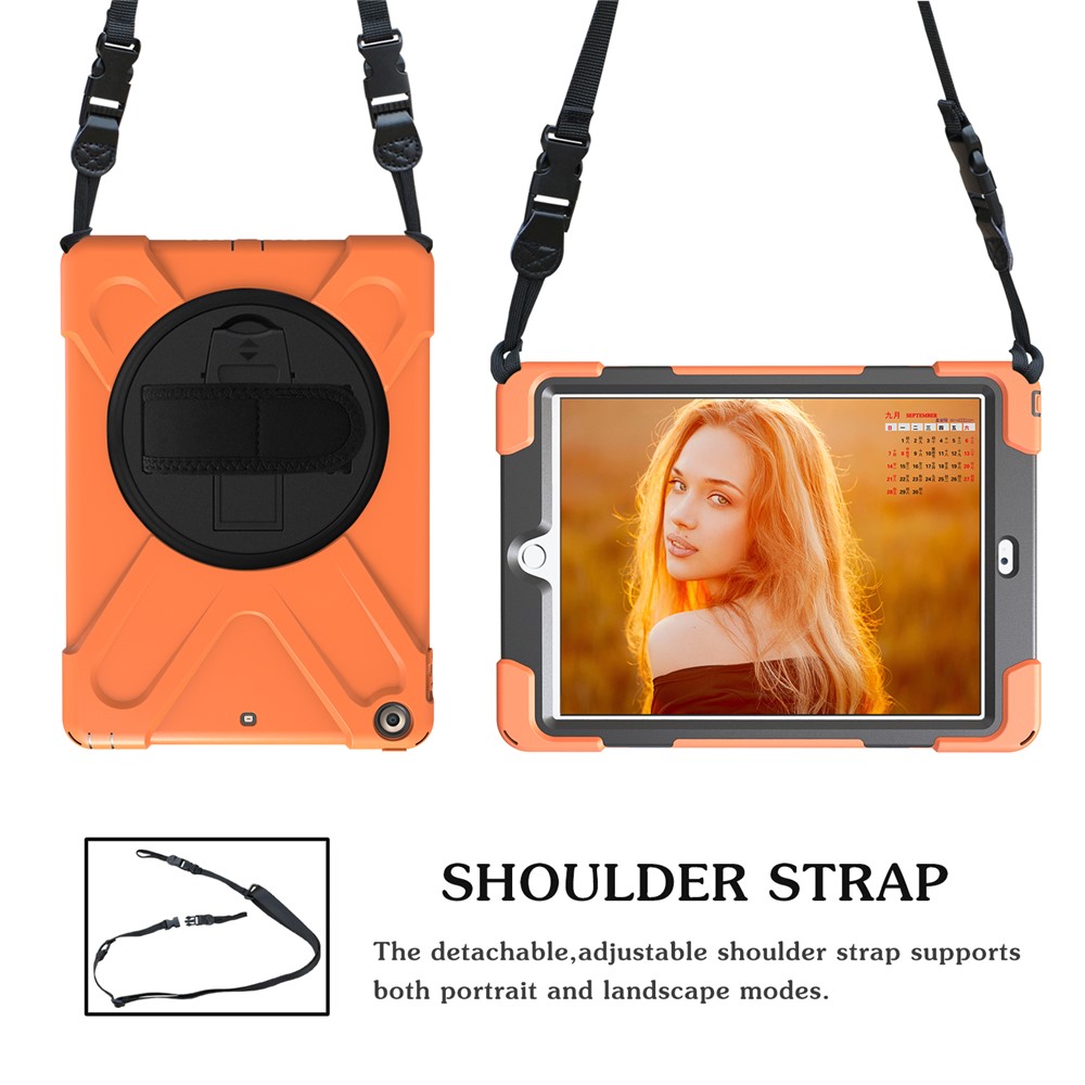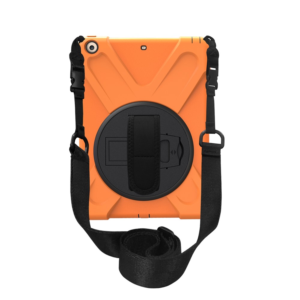For iPad 9.7 (2018) / 9.7 (2017) X-Shape Anti-drop 360 Degree Swivel PC + TPU Combo Kickstand Case with Shoulder Strap – Orange