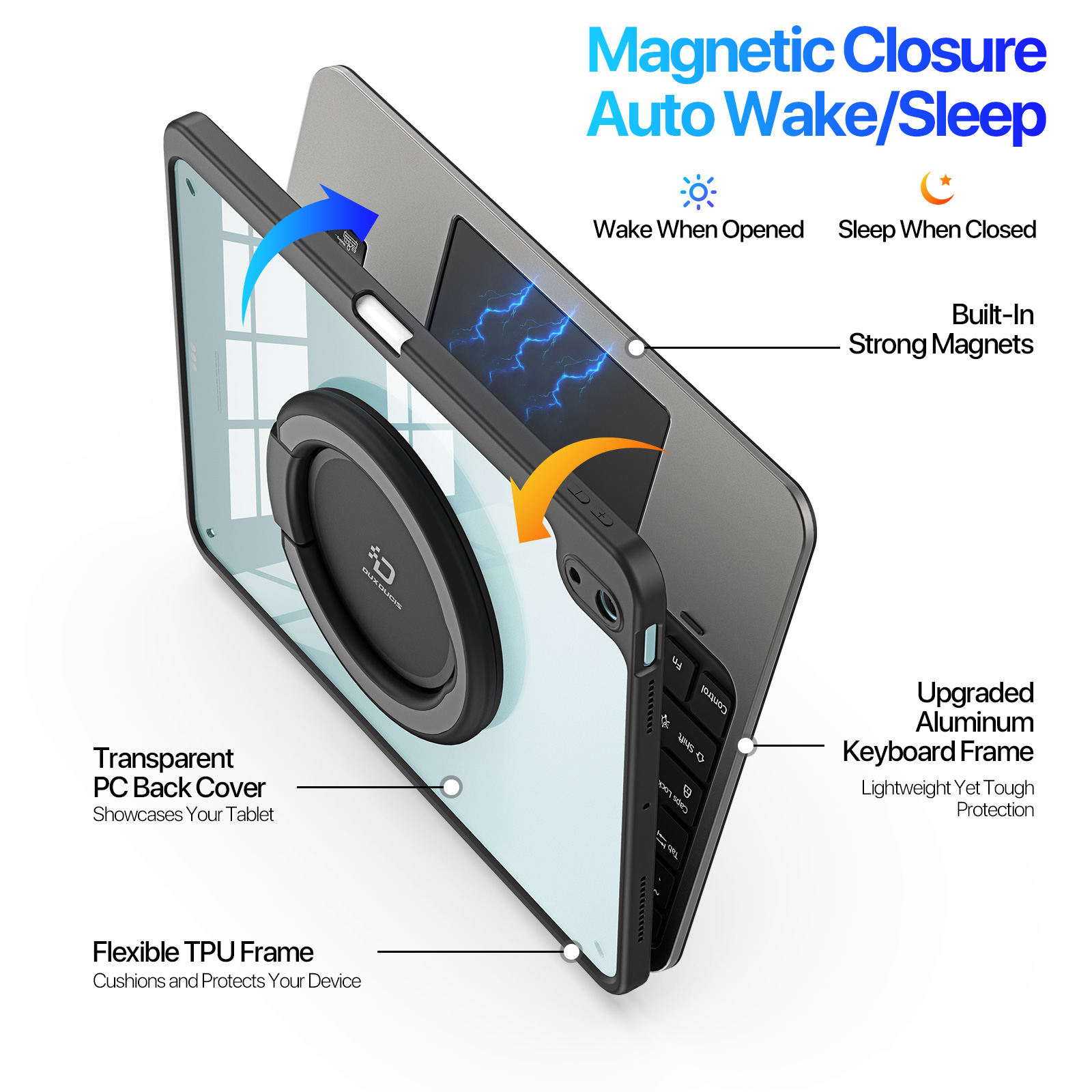 - Magnetic Attachment Supports wake-on-open and sleep-on-close functions for energy efficiency and smart operation.