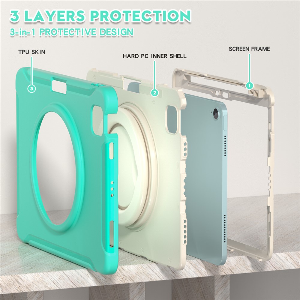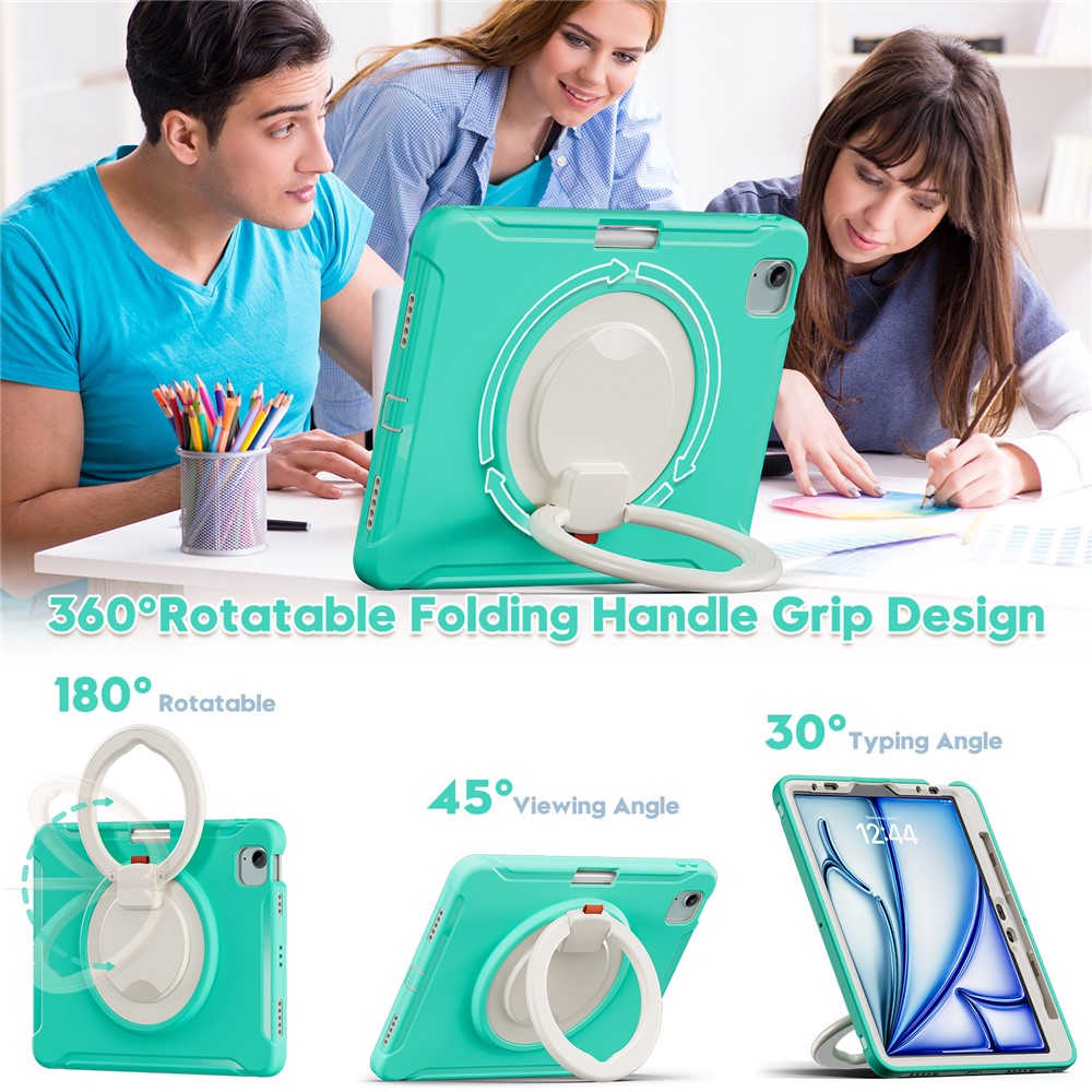 - 360-Degree Rotatable Hand Grip Kickstand: The handle grip design offers a full 360-degree rotation, allowing you to adjust it to the perfect viewing or typing angle effortlessly