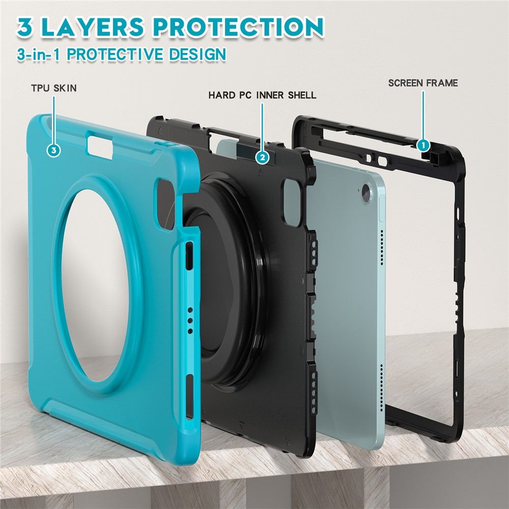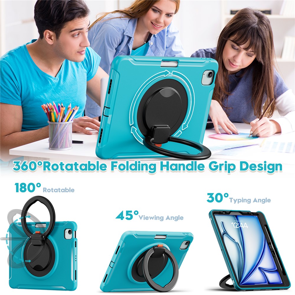 - 360-Degree Rotatable Hand Grip Kickstand: The handle grip design offers a full 360-degree rotation, allowing you to adjust it to the perfect viewing or typing angle effortlessly