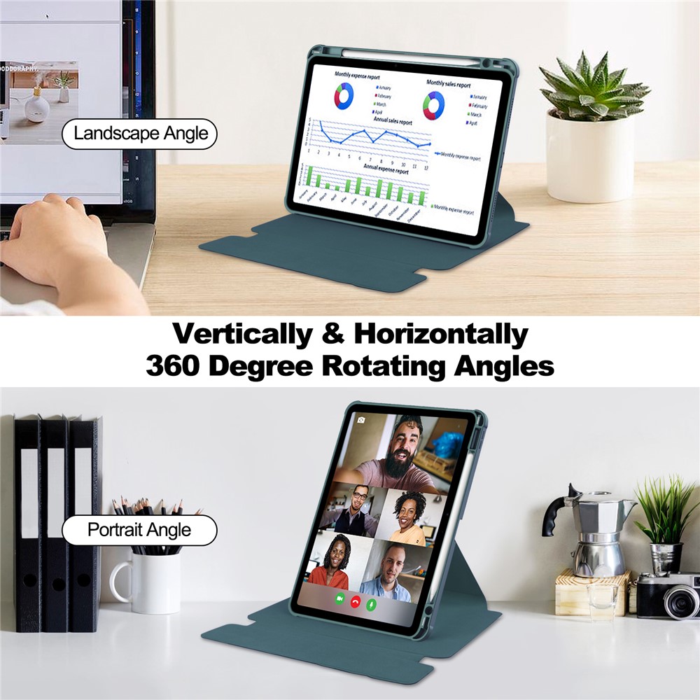 - 360-Degree Rotating Stand The 360-degree rotating stand provides a comfortable angle for viewing and typing