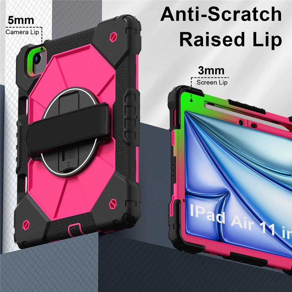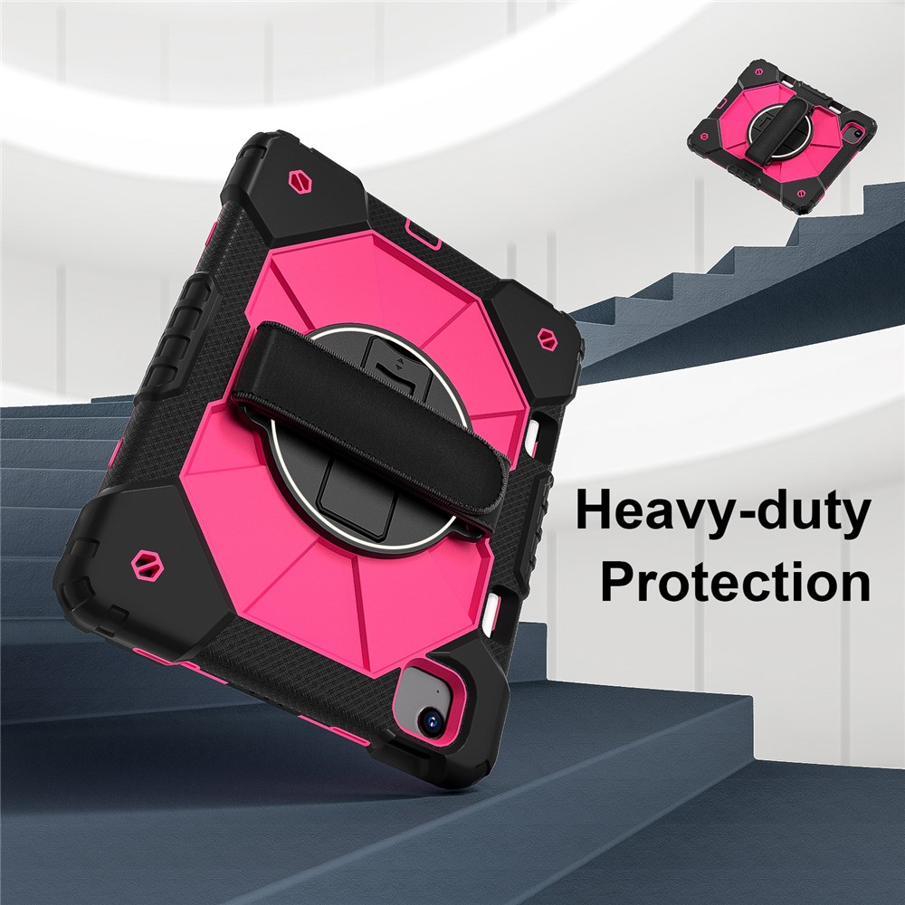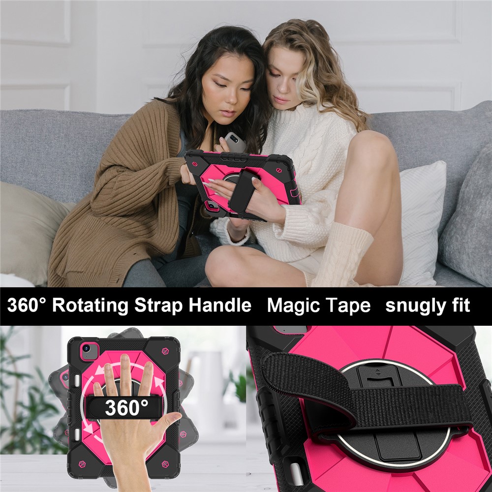 - Folding Kickstand & Hand Strap Features an integrated folding kickstand, allowing hands-free viewing; There is a handy strap on the back of the case, supporting 360-degree rotating, and you can hold your tablet in one hand