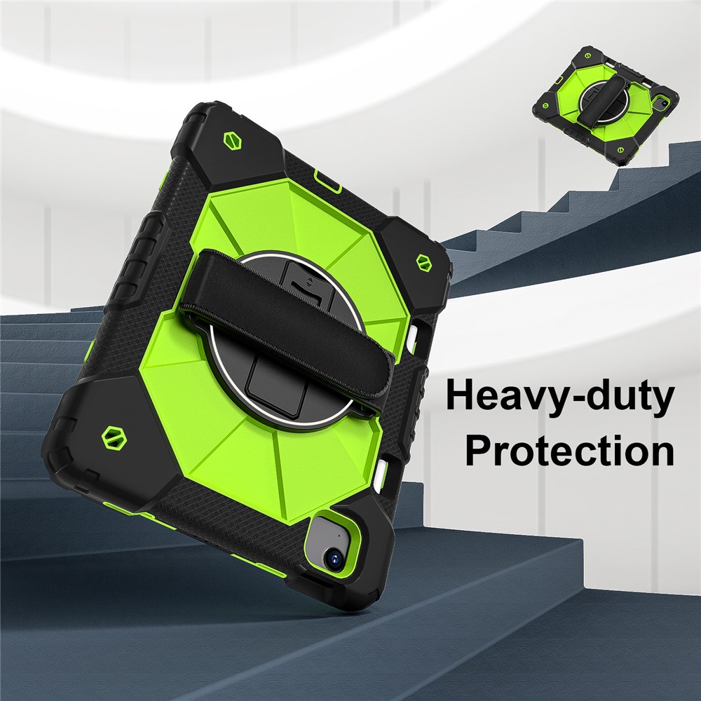 - Folding Kickstand & Hand Strap Features an integrated folding kickstand, allowing hands-free viewing; There is a handy strap on the back of the case, supporting 360-degree rotating, and you can hold your tablet in one hand