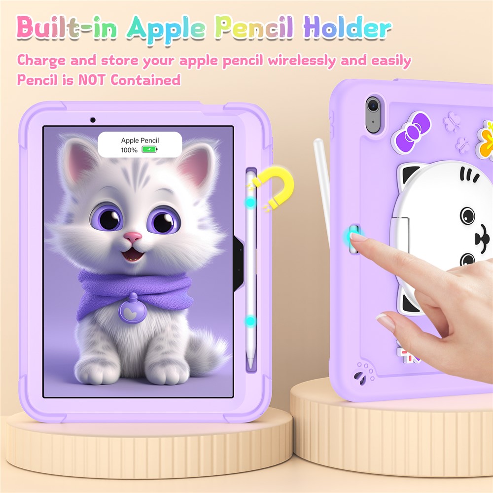 - Adorable Cat Kickstand Built-in 3-angle adjustable kickstand shaped like a cute cat — perfect for watching, learning, or video chatting hands-free.