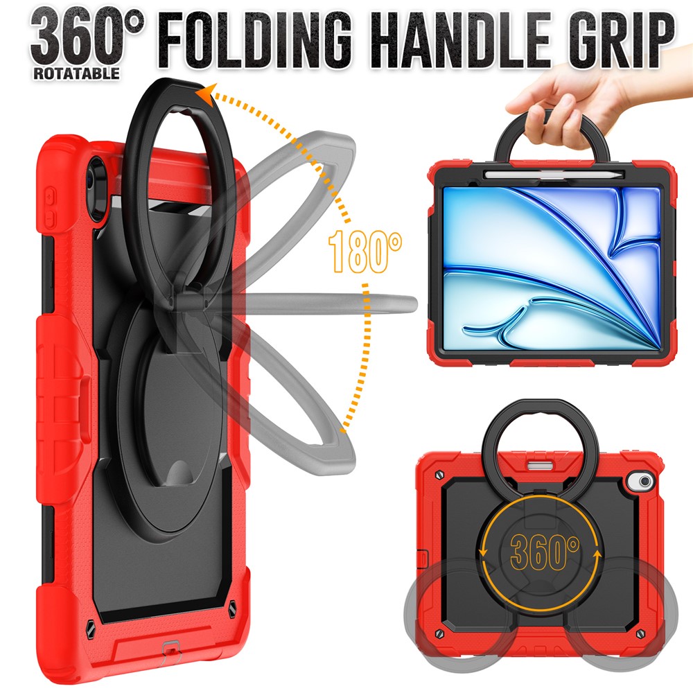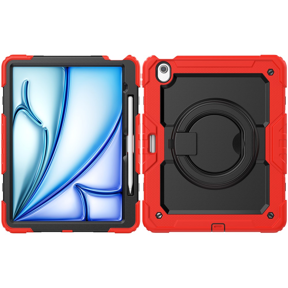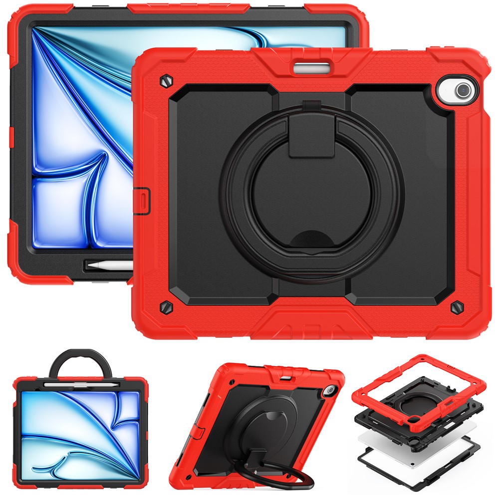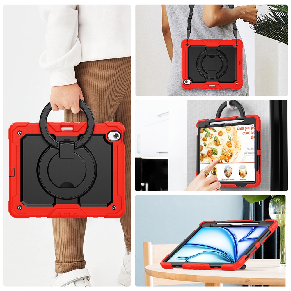 For iPad Air 13 (2025) / (2024) Case PC+Silicone Tablet Cover with Kickstand, Strap – Red