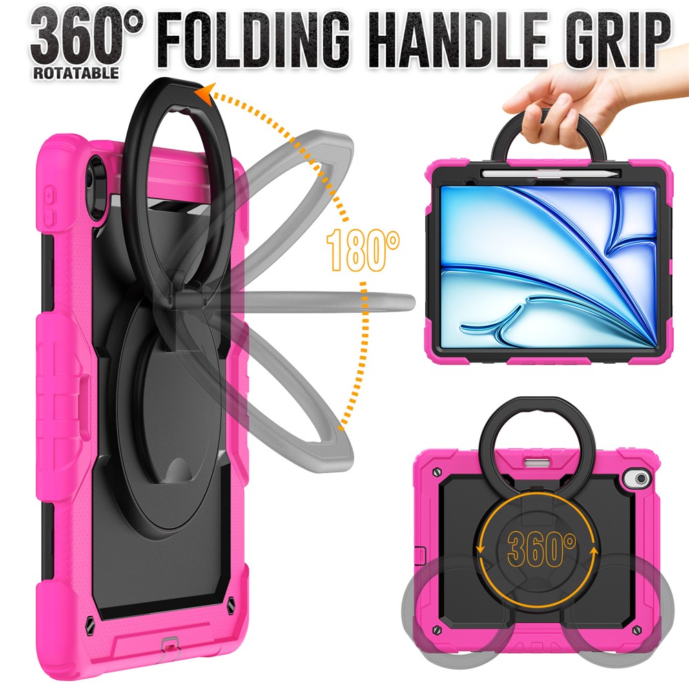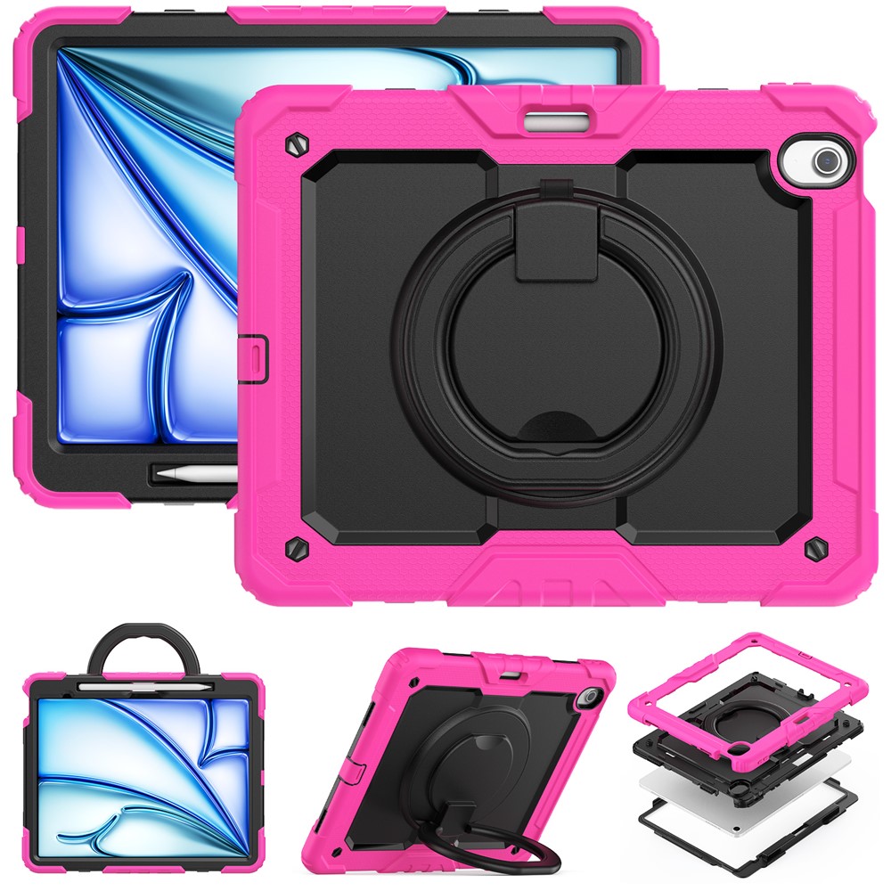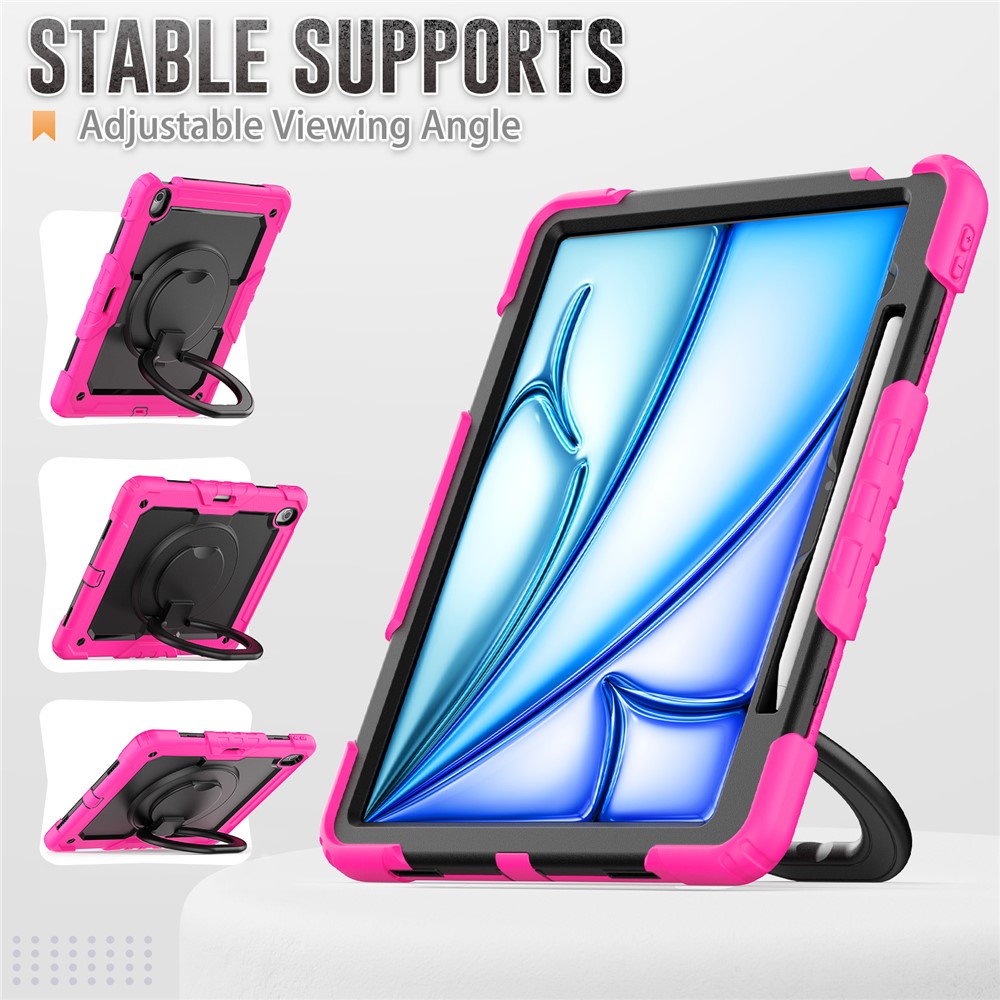 For iPad Air 13 (2025) / (2024) Case PC+Silicone Tablet Cover with Kickstand, Strap – Rose