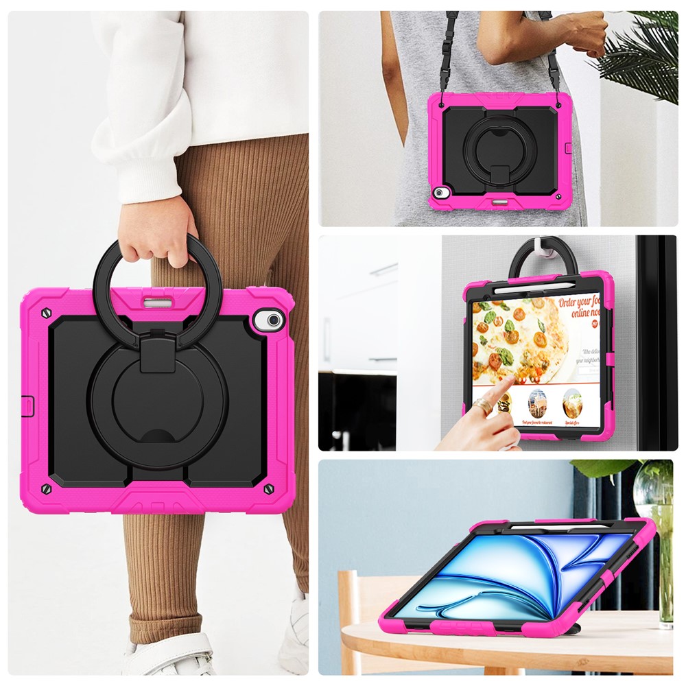 For iPad Air 13 (2025) / (2024) Case PC+Silicone Tablet Cover with Kickstand, Strap - Rose