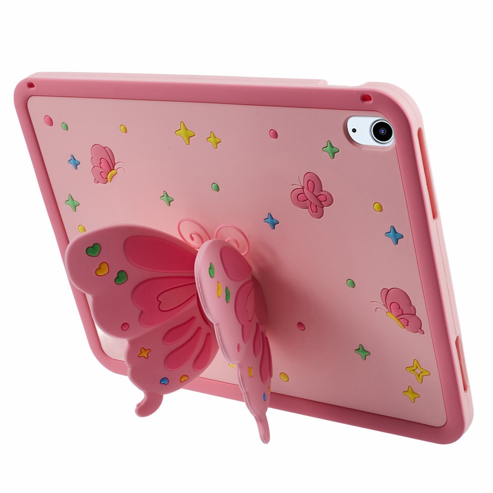 For iPad Air (2020) / (2022) Case Butterfly Kickstand Silicone Tablet Cover with Lanyard