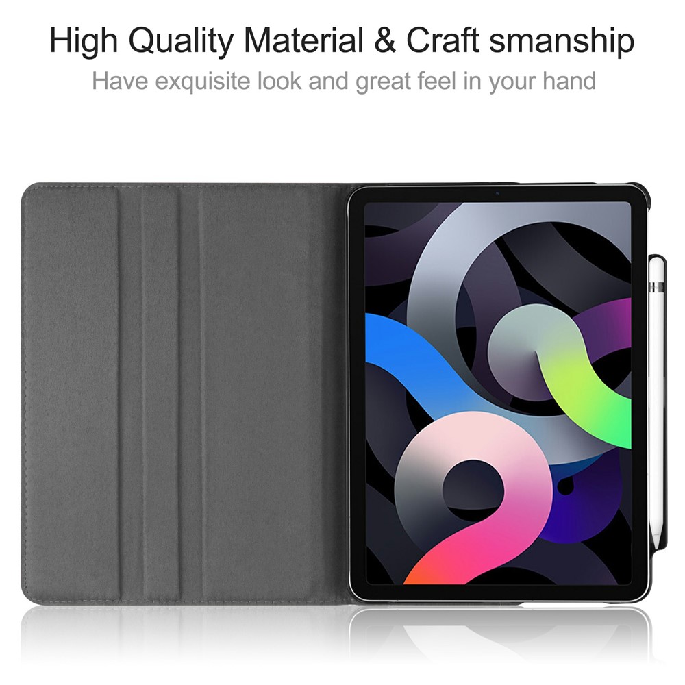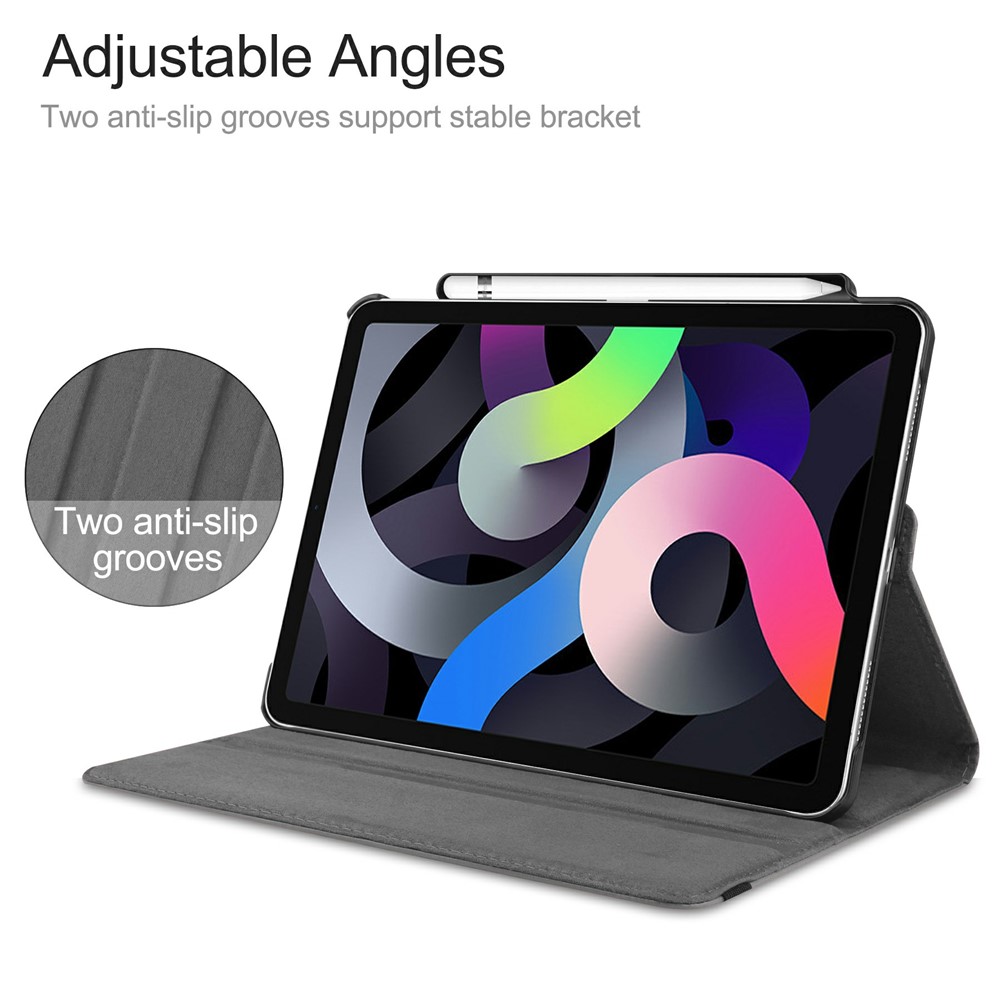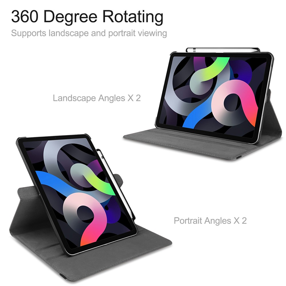 For iPad Air (2020)/Air (2022) 360 Degree Rotary Litchi Texture Leather Tablet Stand Case with Pen Slot – Black