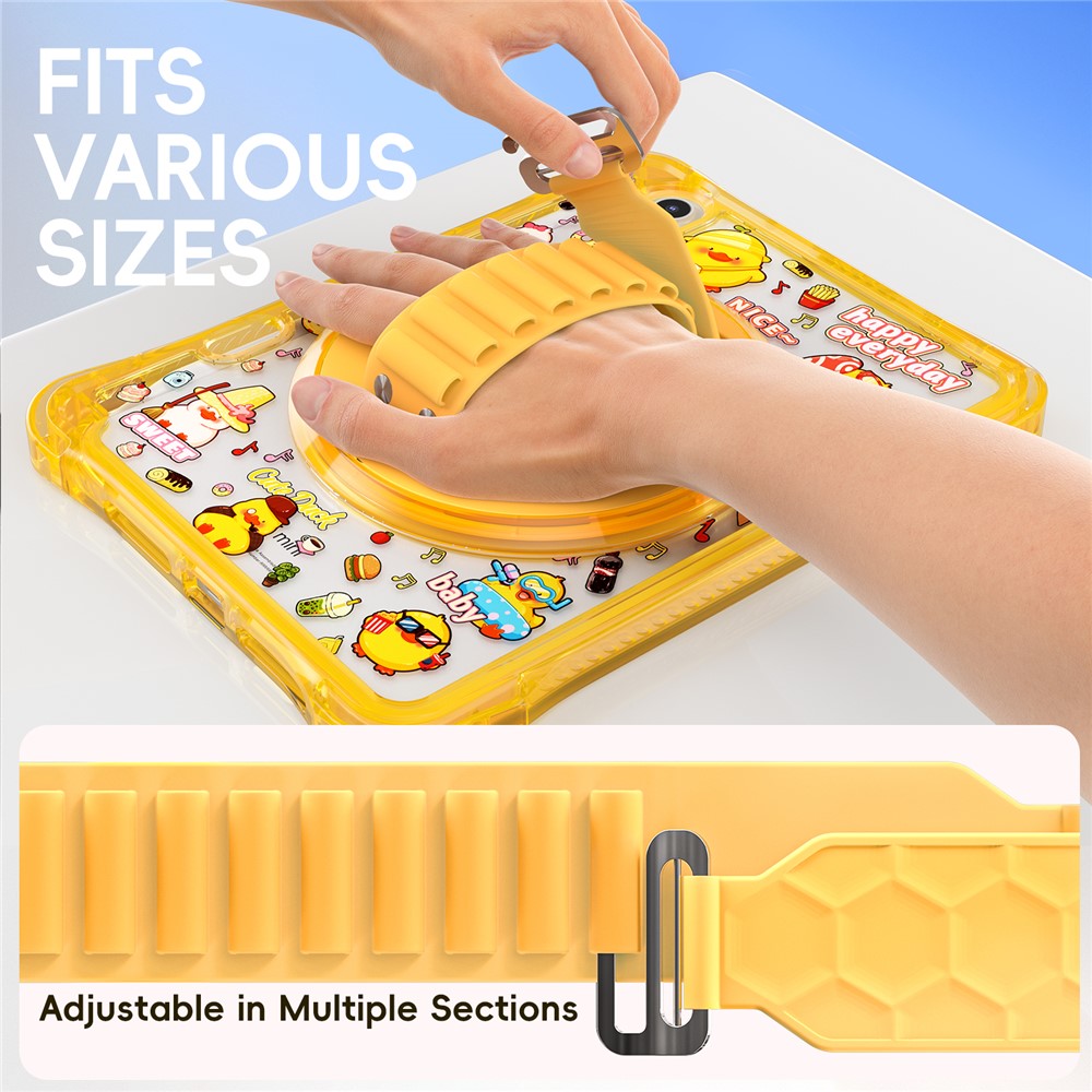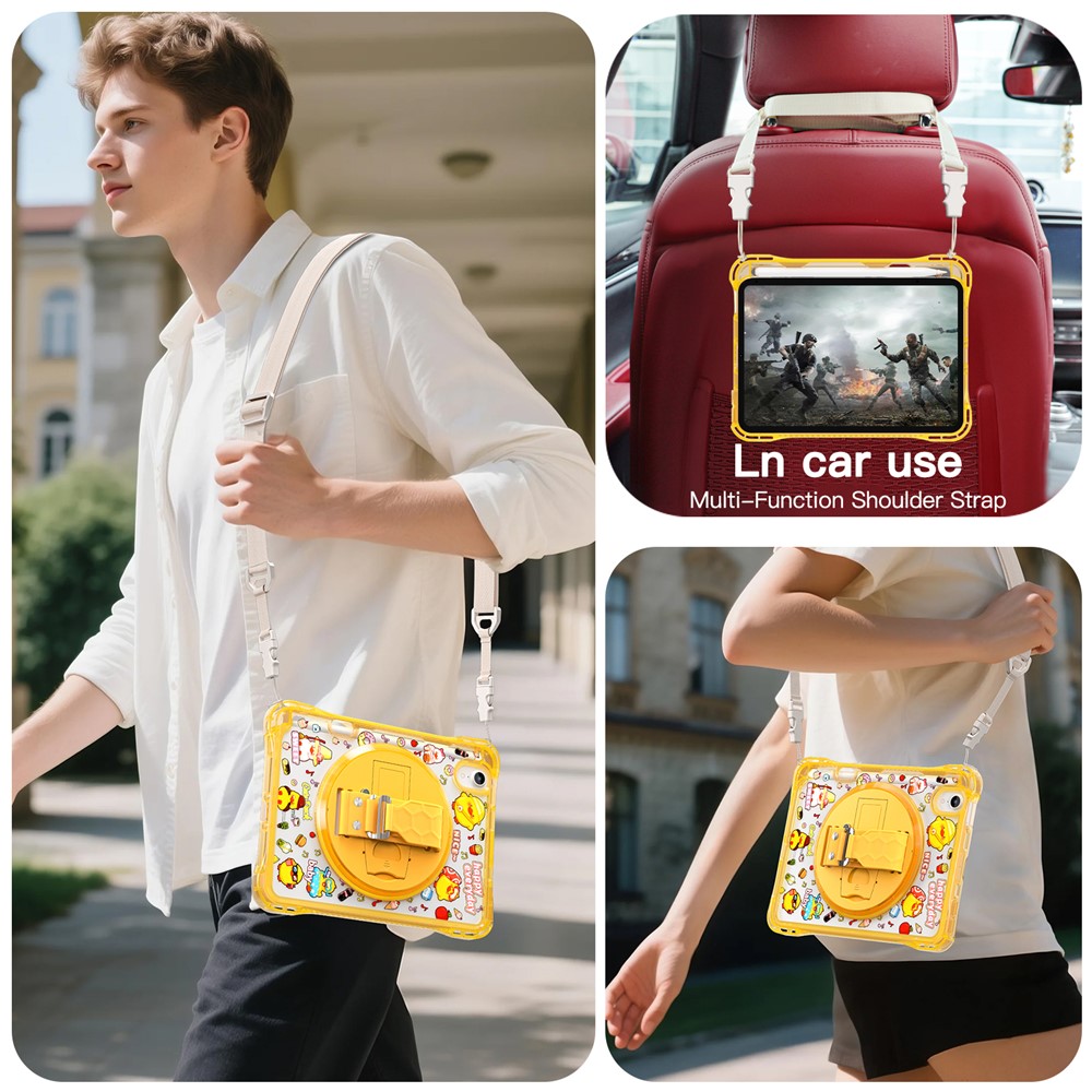 - Adjustable Nylon Strap The adjustable nylon strap provides versatility and comfort, allowing you to easily carry your tablet over the shoulder or around the neck
