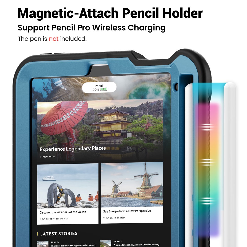 - Ring Strap Pencil Holder & Magnetic-Attach Pencil Holder A unique strap holder is located on the back of the case, providing easy and secure storage for your stylus or pencil. Magnetic-attach pencil holder support stylus wireless charging(stylus is not included)