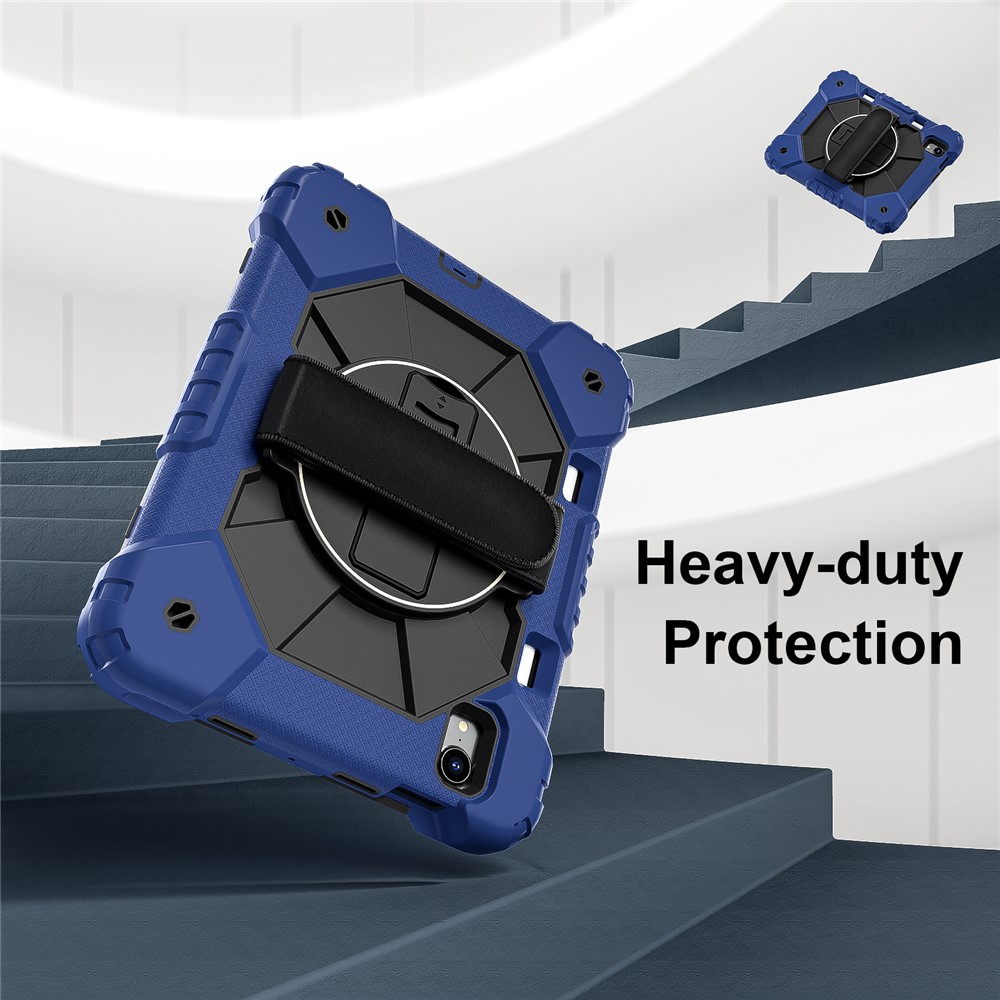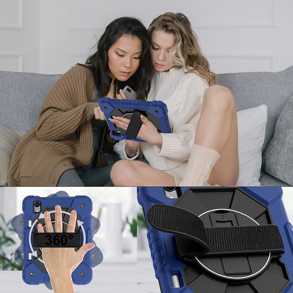 - Folding Kickstand & Hand Strap Features an integrated folding kickstand, allowing hands-free viewing; There is a handy strap on the back of the case, supporting 360-degree rotating, and you can hold your tablet in one hand