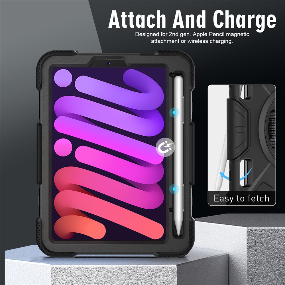 - The folding 360-degree rotating kickstand supports viewing/typing angles adjustment