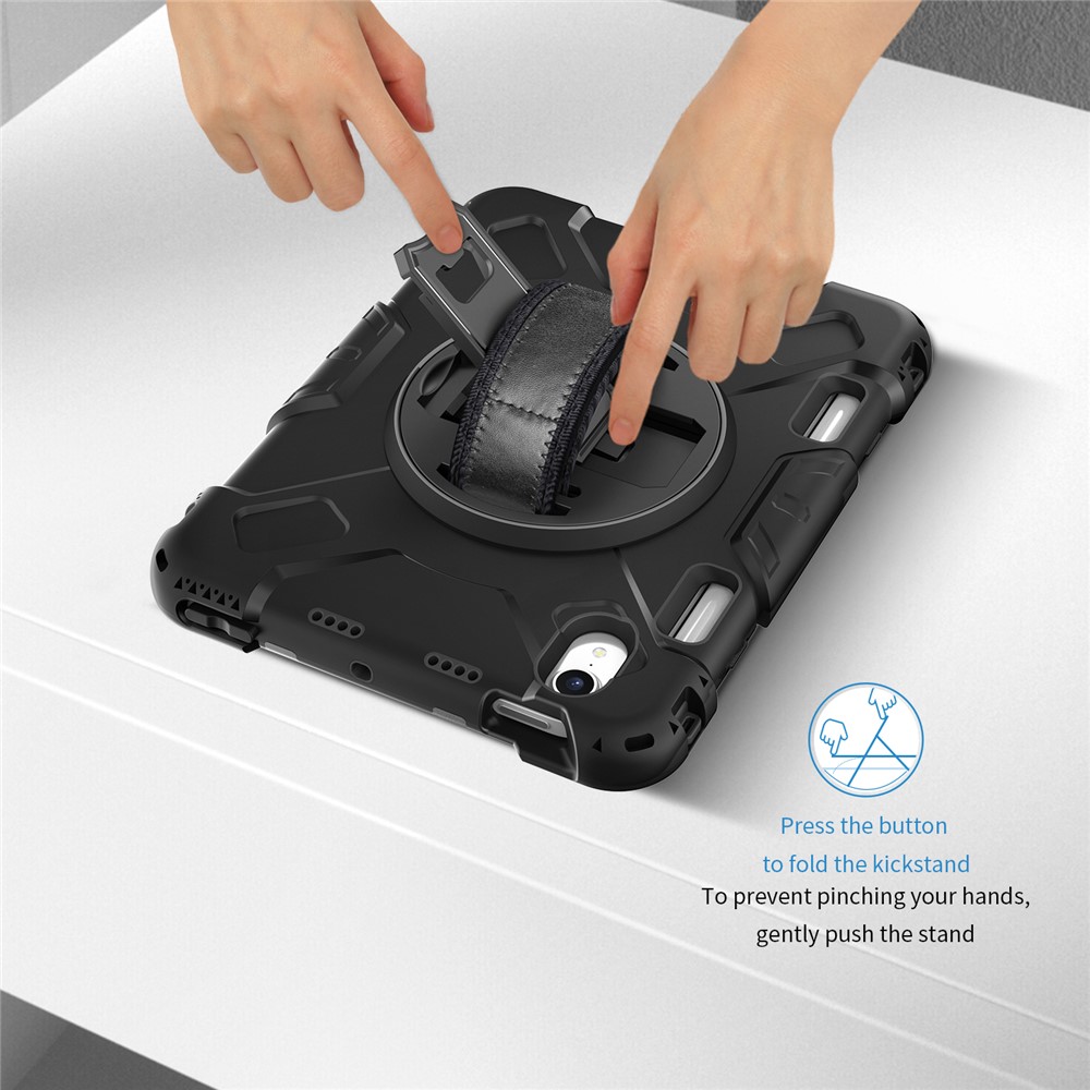 - There is a hand band strap on the back of the tablet case, which allows you to hold your device safely with one hand