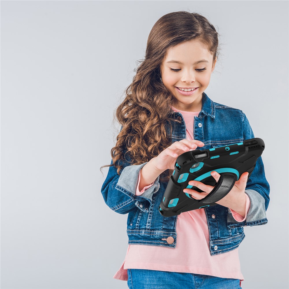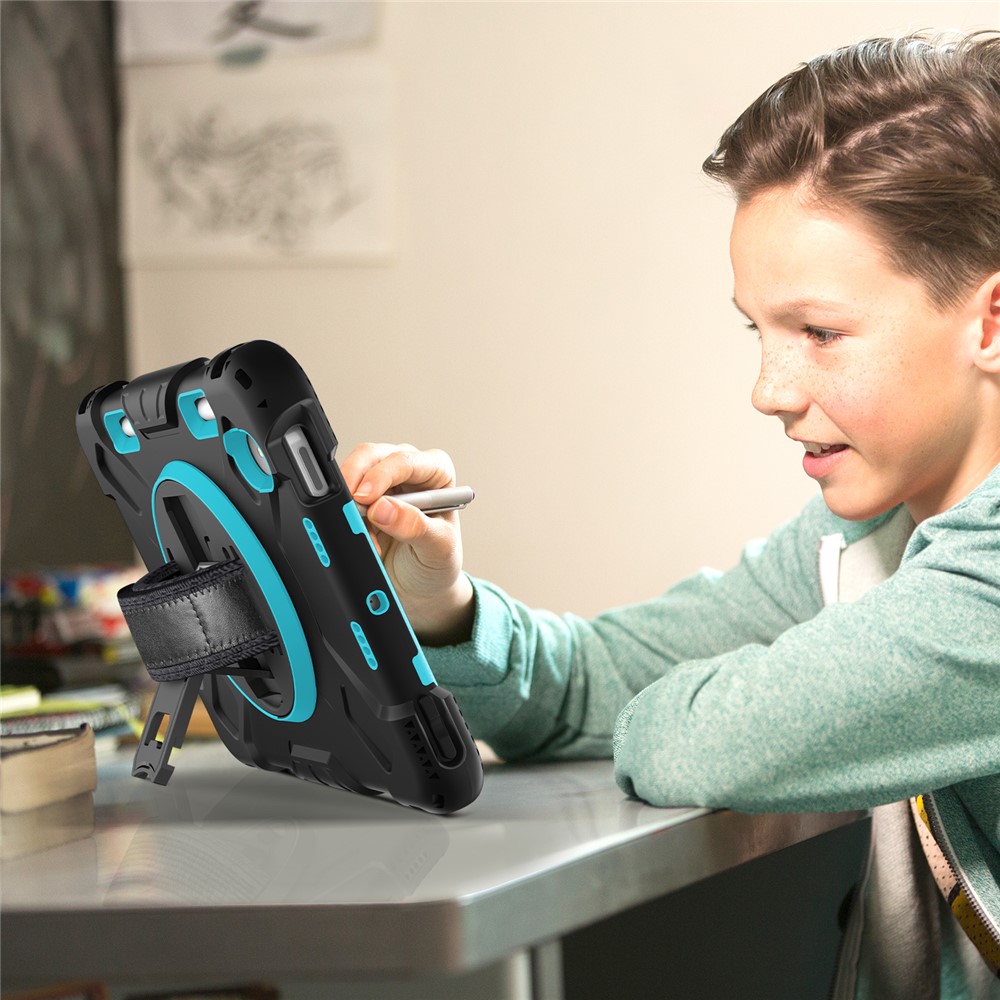 - There is a hand band strap on the back of the tablet case, which allows you to hold your device safely with one hand