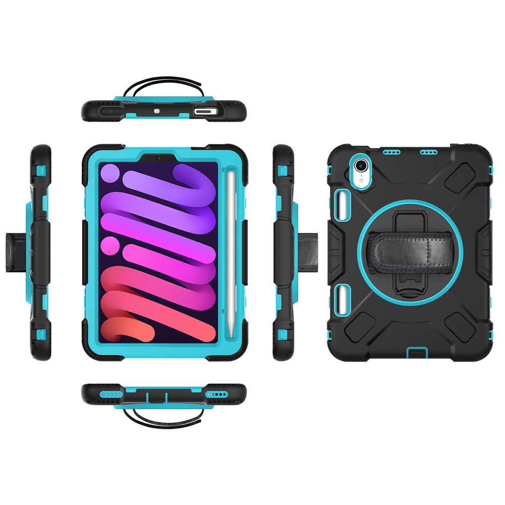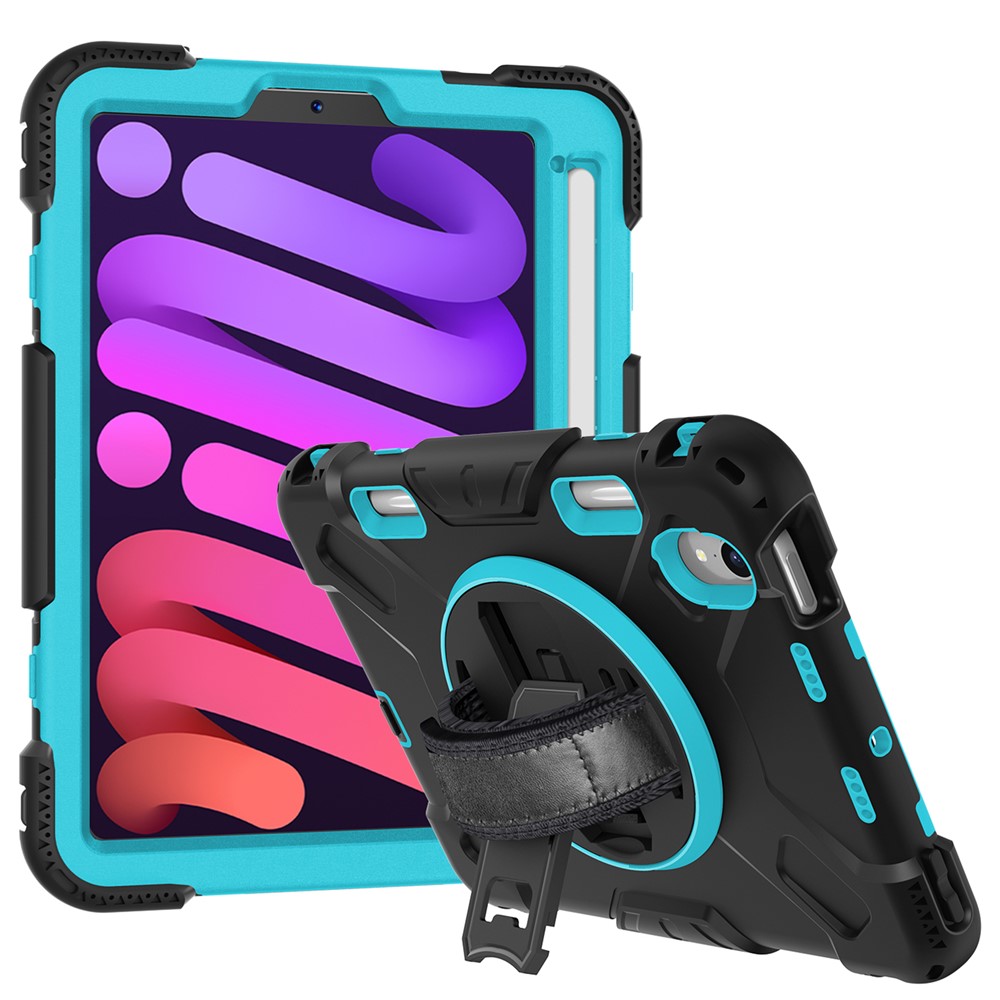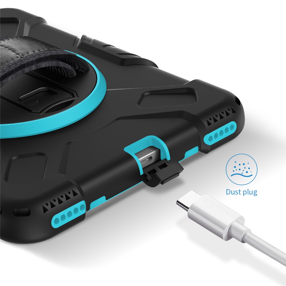 - The folding 360-degree rotating kickstand supports viewing/typing angles adjustment